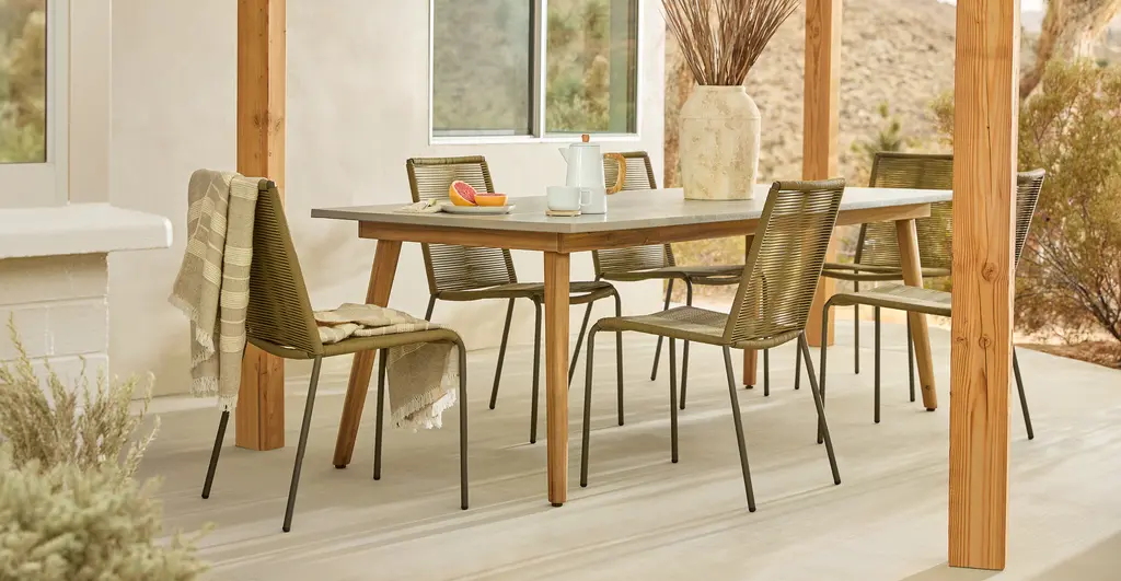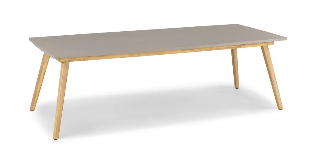 Natural elegance with an edge of industrial chic. The Atra features acacia wood legs and a polystone top. Equal parts durable and beautiful, the Atra table is as well-suited for a beautiful meal as it is for a raucous game night under the stars.