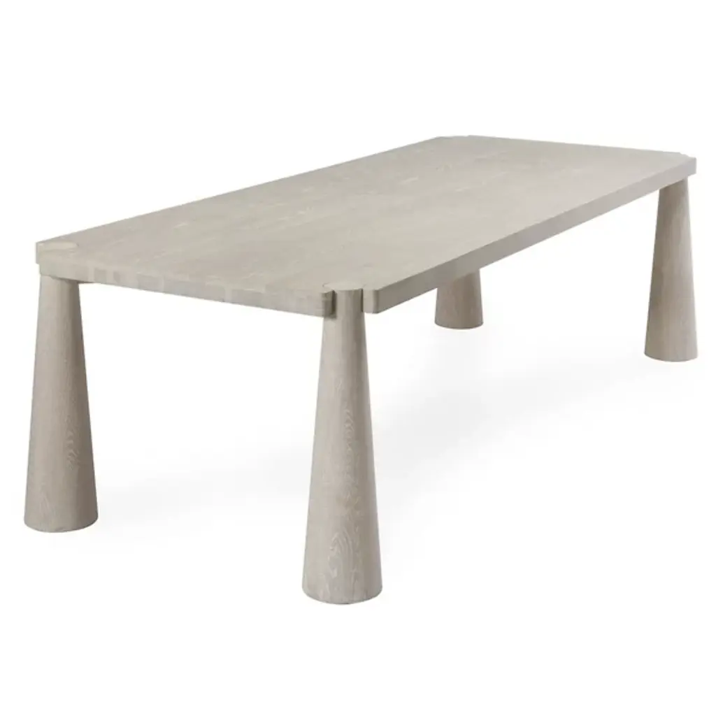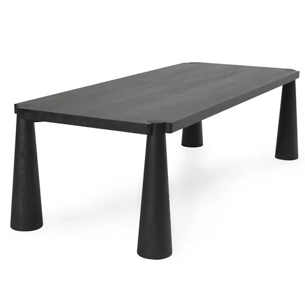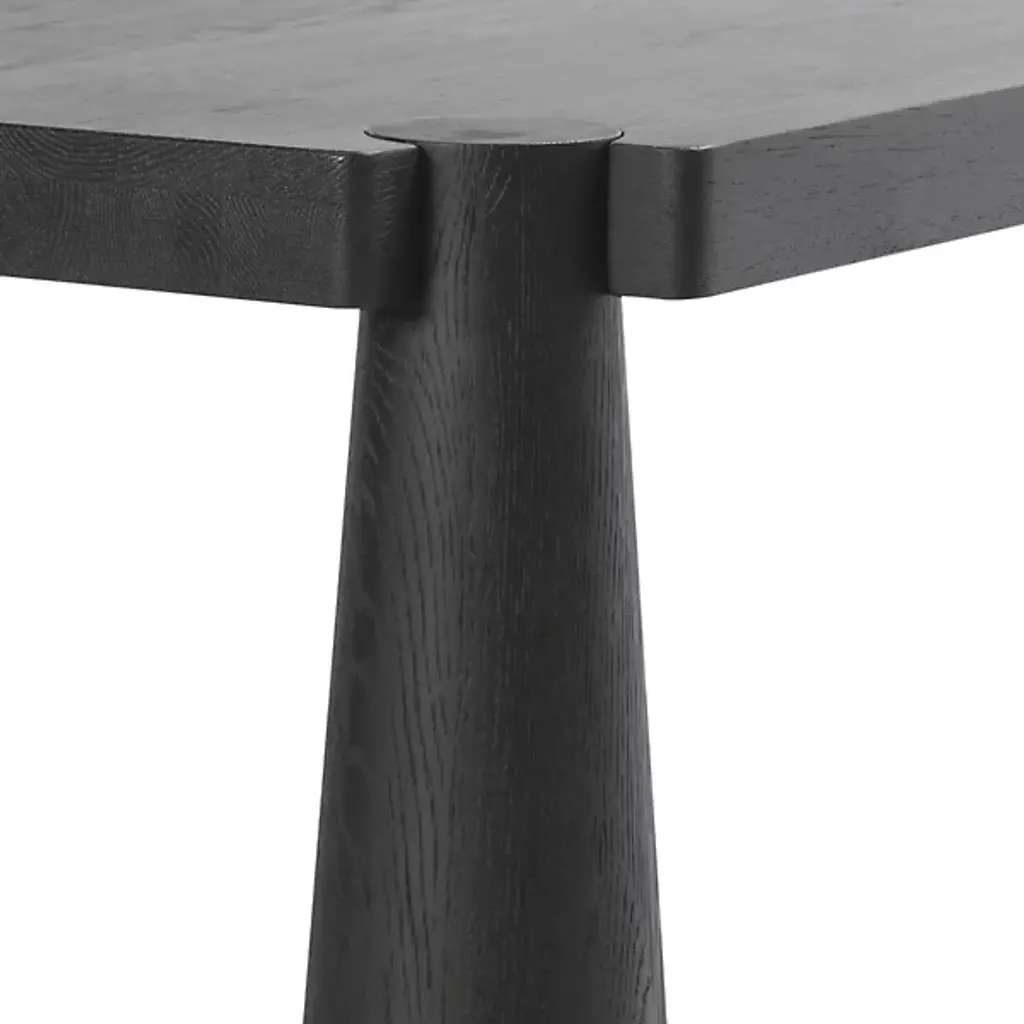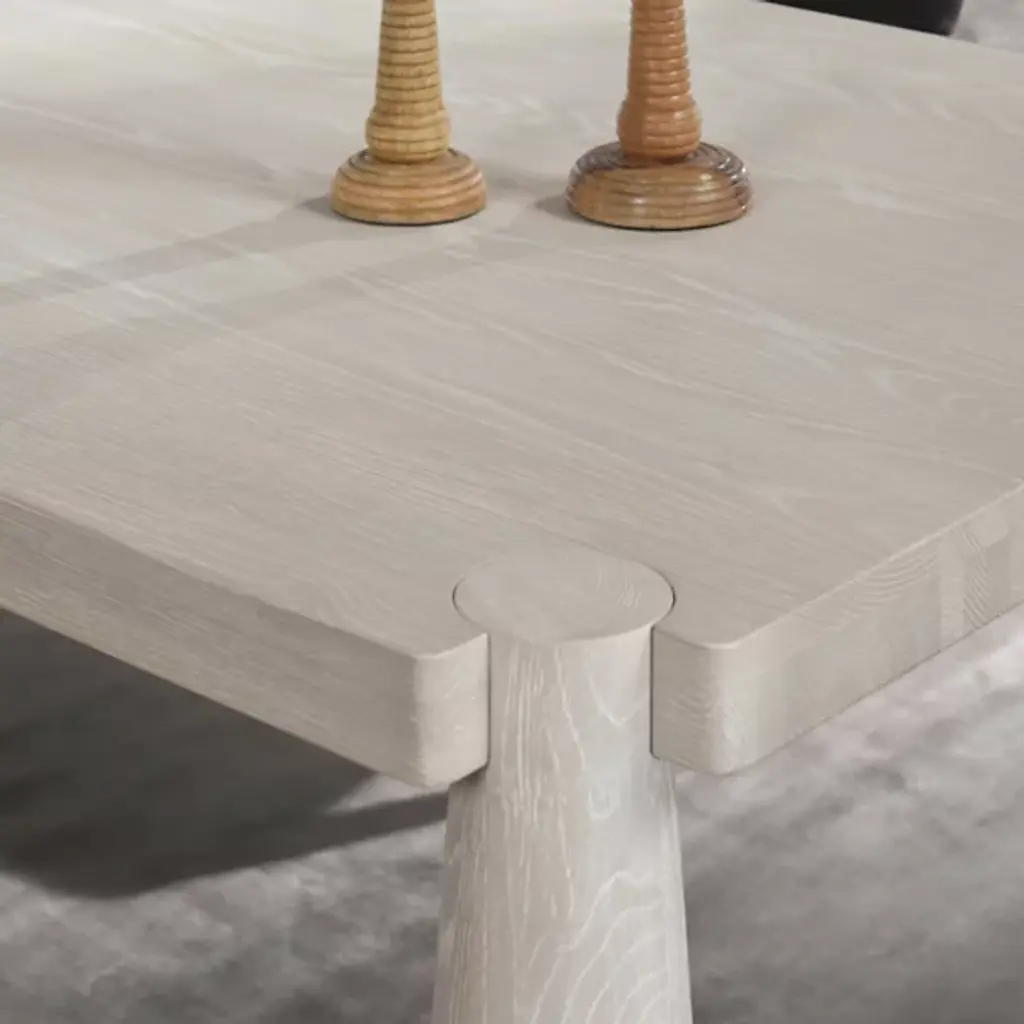 The Atrop Dining Table from Classic Home reveals its craftsmanship through exposed corner joinery that highlights the junction between the tabletop and legs. Conical tapered legs draw the eye while providing stable support for gatherings of up to eight people. Solid oak construction ensures this table will withstand decades of daily use and special occasions. The hand-finished matte gloss treatment protects the wood while allowing its natural character to remain visible through subtle texture variations. This table anchors dining spaces with a confident presence, making it adaptable to various interior approaches from minimal to more traditional settings.