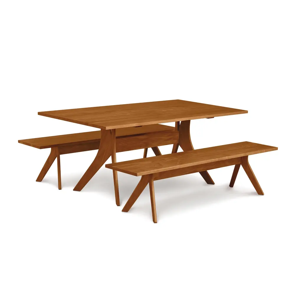 Made in Vermont by Copeland Furniture. The double X formation of the Audrey Dining Table trestle creates a state of dynamic tension giving the design a rigid base that provides diners with plenty of unobstructed leg room. Features
