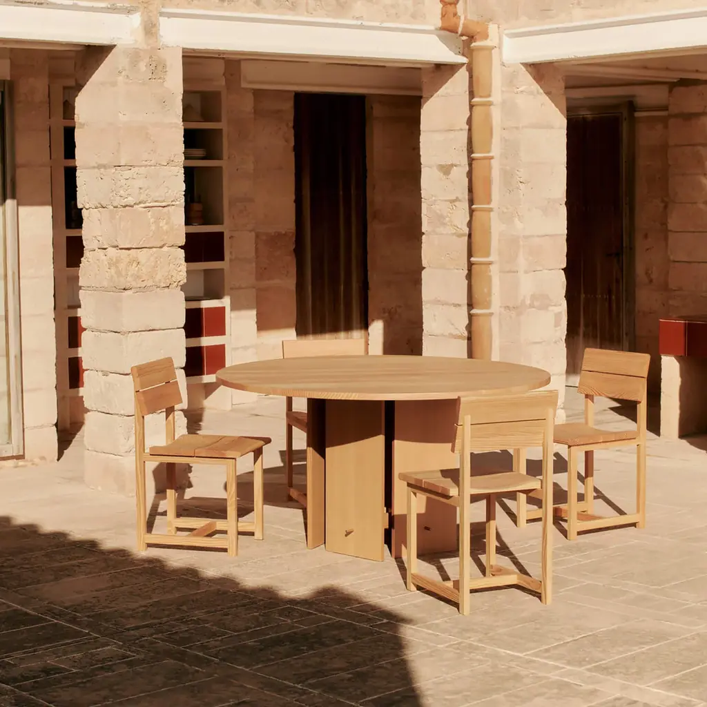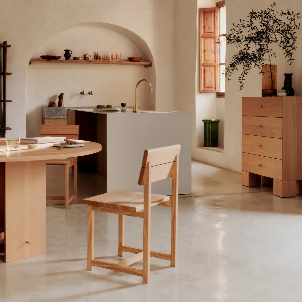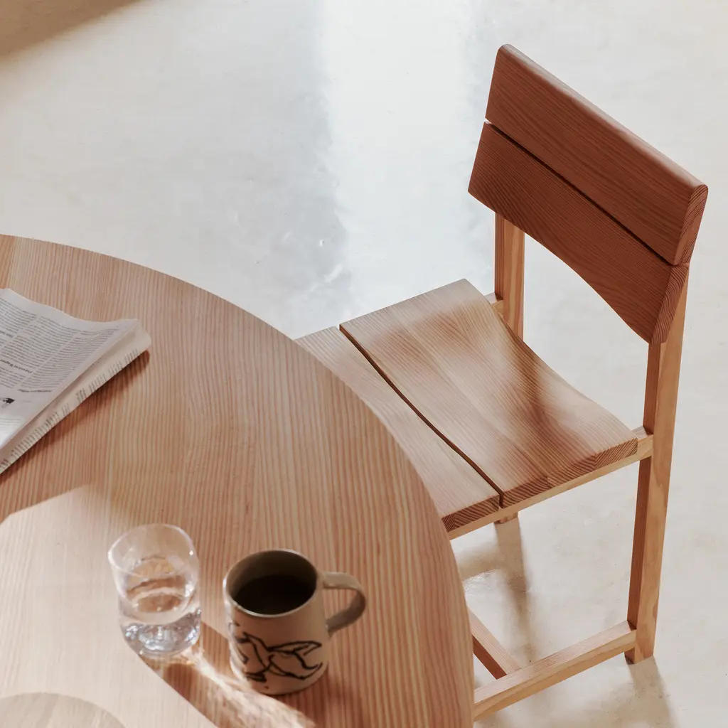 Among all pieces of furniture, the dining table is the one at the heart of a family’s most heartwarming memories, from breakfasts with the kids to Christmas dinners and heartfelt night talks over glasses of wine. The Aukko Dining Table is the perfect companion to all of these moments. Inspired by Can Lis, the family home of the world-famous architect of the Syndey Opera House, Jørn Utzon, the table incorporates both architectural elements and the warmth of Mallorcan crafting traditions. Featuring a beautifully structured design, the table boasts wide wood panels arranged at an angle in a sculptural design and a circular top that keeps everyone on an equal footing. The use of FSC™ Mix-certified Douglas fir lends the dining table natural charm while bringing a touch of rustic warmth into contemporary spaces. Additionally, the Aukko Dining Table is sent flat-packed to minimize packaging materials and optimize function. Want to create a harmonious dining space? Matching dining chairs from the same collection are also available.