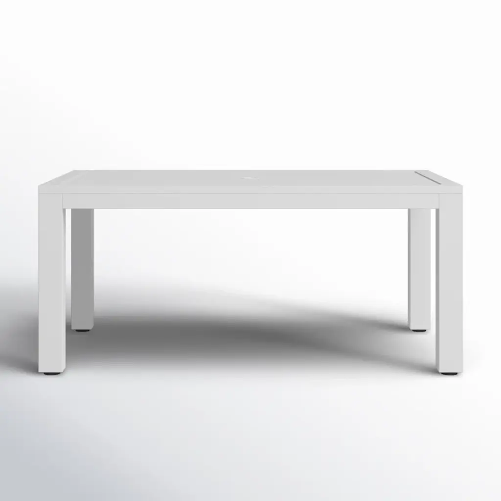 Elevate your outdoor dining experience with the Aura Aluminum Rectangular Dining Table from Barlow Tyrie. Featuring a sleek and minimalist design, this table is crafted with aluminum for a durable, yet visually light appearance . Its powder-coated finish and umbrella hole make it both stylish and practical. Choose from a variety of neutral modern colors to complement your outdoor space. Highlights