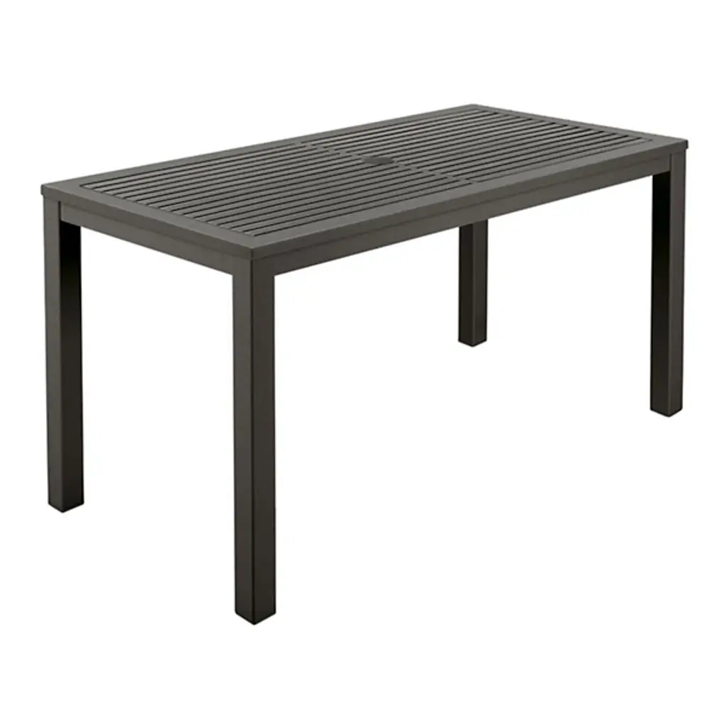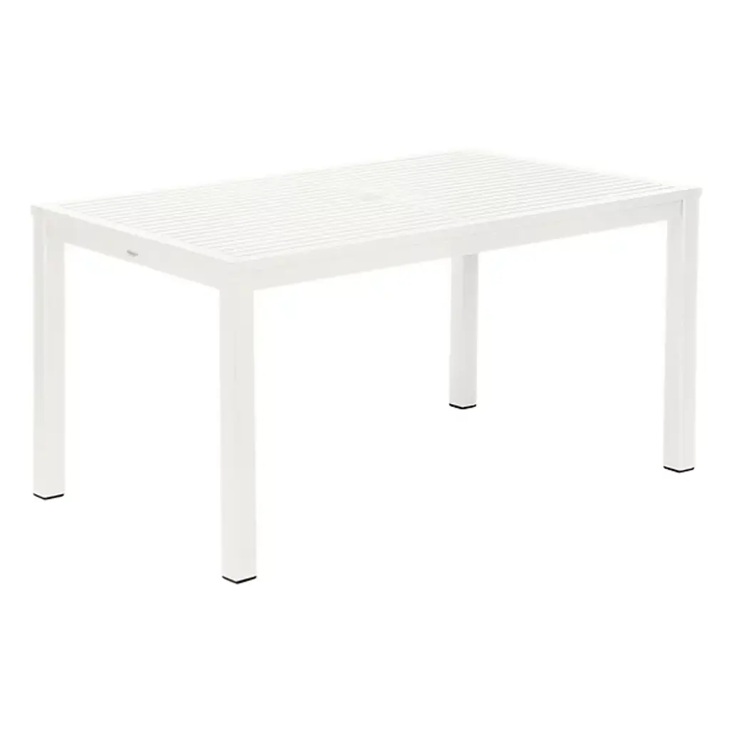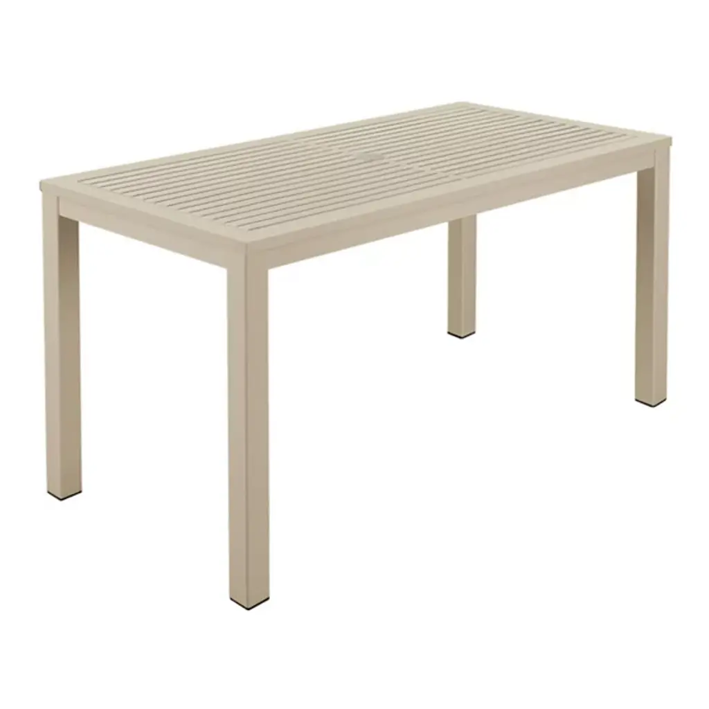 The Aura Rectangular Outdoor Dining Table from Barlow Tyrie brings a touch of sophistication to your outdoor spaces. Crafted from powder coated aluminum, this table seamlessly integrates with transitional style settings. The table's durable construction makes it perfect for use on your patio, deck, or terrace. It's designed for outdoor use, making it an excellent choice for those who enjoy dining alfresco. Enhance your outdoor dining experience with its functional design and integrated umbrella hole.