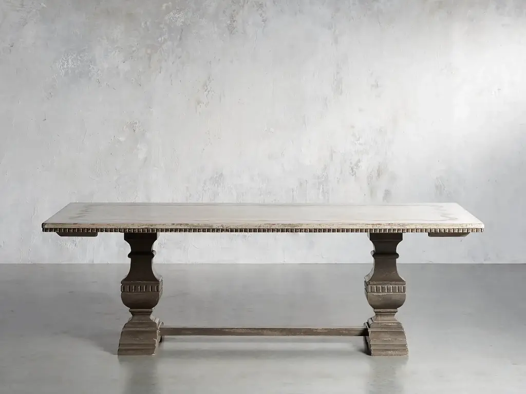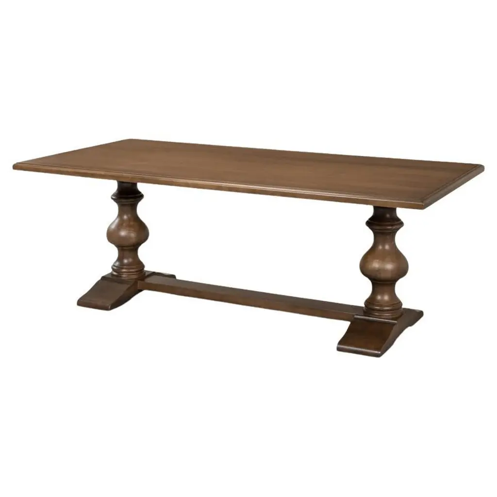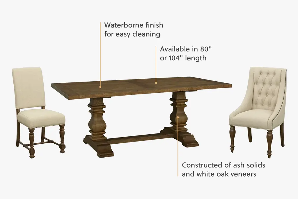 Our rustic Avondale dining table showcases understated splendor. Substantial baluster legs support and rest on antiqued planks creating a time-honored look. A waterborne vintage oak finish keeps the wood closer to its natural color. This multi-step, hand-applied finish is durable as well as stain and scratch resistant.