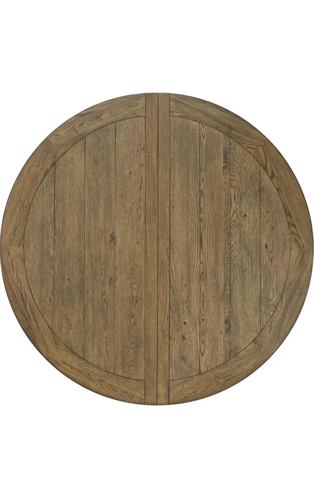 Rustic and elegant, our Avondale round dining table creates an understated beauty in your dining space. The planked table top has been hand-planed against the grain to give a worn appearance and a multi-step, vintage oak hue is hand-applied. The finish makes this piece durable as well as stain and scratch resistant. Rasping, cowtailing and wormholes give this dining table its unique aged look. A trestle leg with elegant detailing creates a sturdy base.