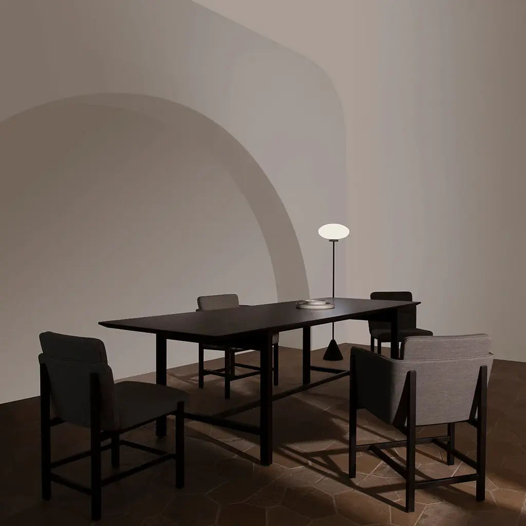 Aya is an onomatopoeia – a word that mimics a phonetical sound. A poetic name as soft and sophisticated as the design itself. The collection design language is an elaboration of the encounter between Asian and Scandinavian design. Aya is minimal yet highly complex and every detail has been careful orchestrated, from the small wooden joints and angles to the stitching and seating comfort. The elegant light wooden frame is deeply inspired by Asian culture and design, and effortlessly carries the soft and embracing shell and seat. The result is a full range of Aya furniture for the perfect dining and socializing setting. Comfort and sturdy durability lie at its core, which is complimented by the elegant appearance. The first Aya collection drop comprises a fully upholstered dining chair with armrest, a dining chair without armrests, and two dimensions of dining tables: 1,800 cm and 2,400 cm in length. The design of the tables mirrors the structure and details of the chair frame.