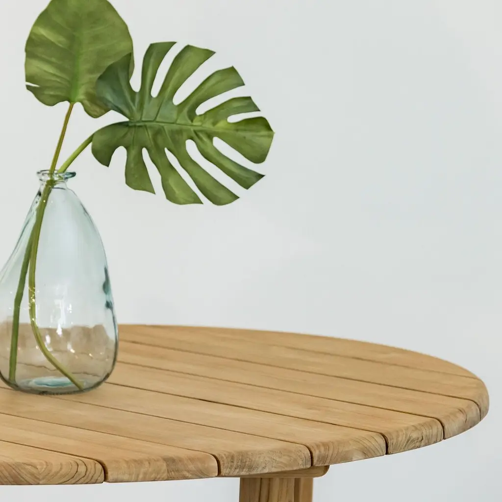 Azelea Outdoor 56" Round Dining Table, Natural Teak