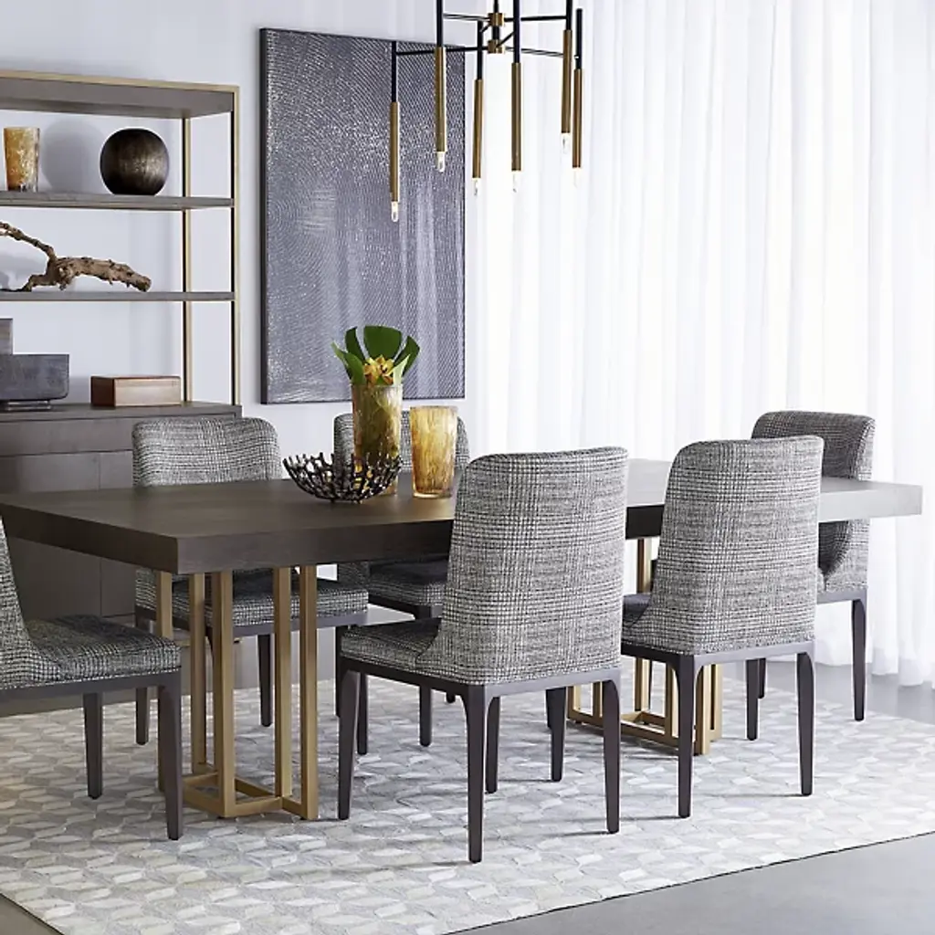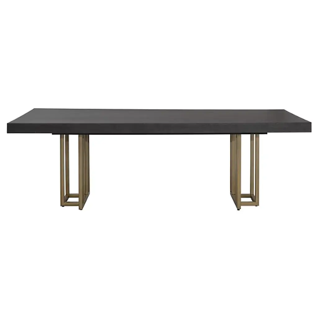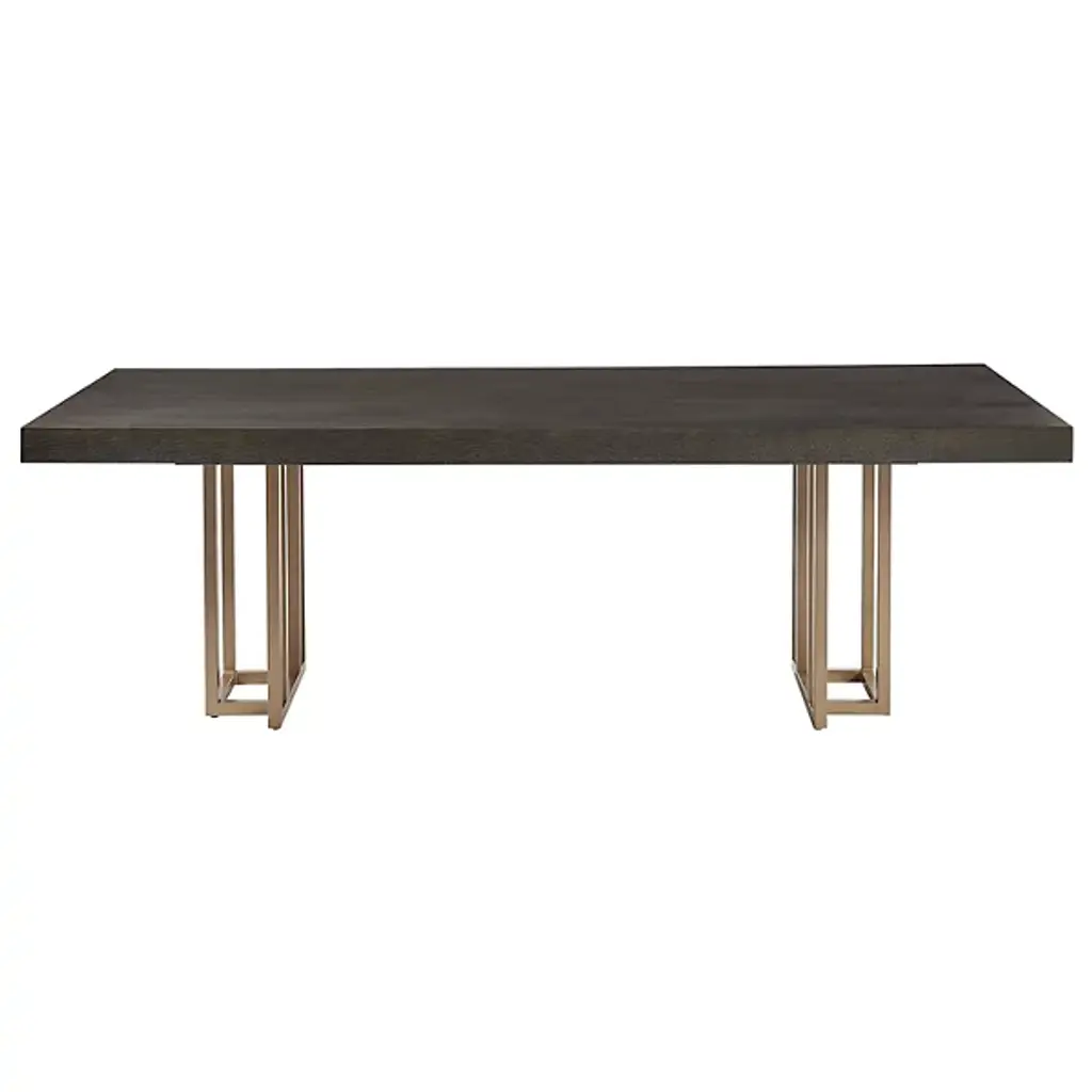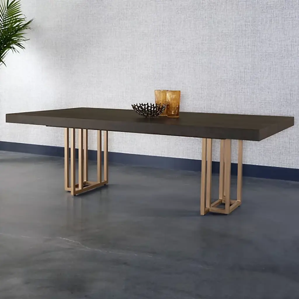 The Baladessara Dining Table from Sunpan combines classic design with a modern twist. Featuring a sleek oak veneer tabletop complemented by bold powder-coated steel legs in a rustic finish, creating a memorable focal point in any dining space. The natural wood grain across the top of the table features unique variations in texture, ensuring that each table is unique, adds character and warmth to its surroundings, and presents a timeless style with a contemporary edge.