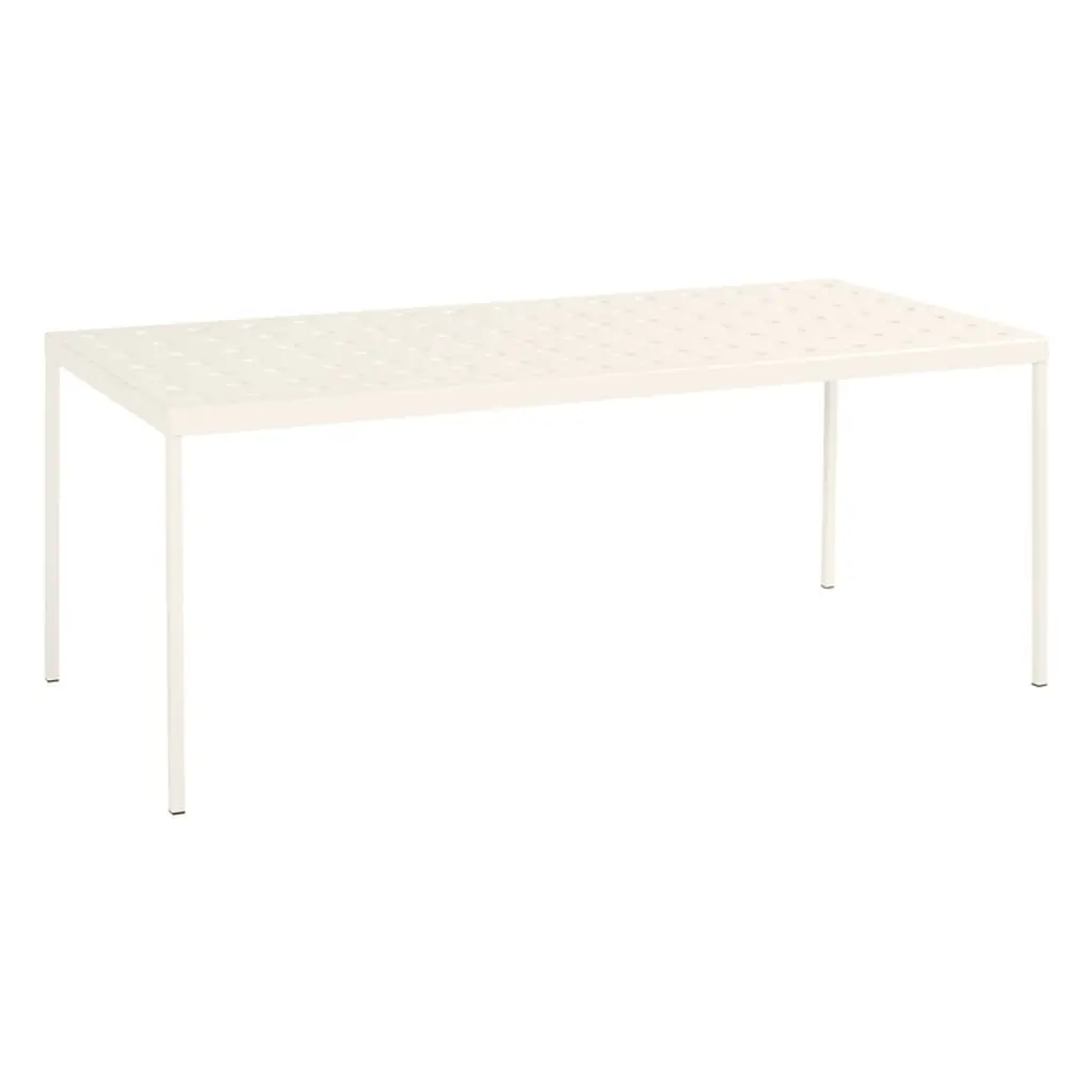 HAY’s Balcony table is part of a clever collection of outdoor furniture designed by the Bouroullec brothers. Made of thin steel sheet, the elegant Balcony outdoor dining tables are incomparably light and easy to move – a perfect addition to the garden or a patio. Featuring a weather-resistant coating the Balcony collection is as carefree as it looks. The round holes pressed through the steel plate provide multiple functions: they add character and softness to the geometrical design and allow rainwater to drain off the table's surface, while also strengthening the structure of the furniture.