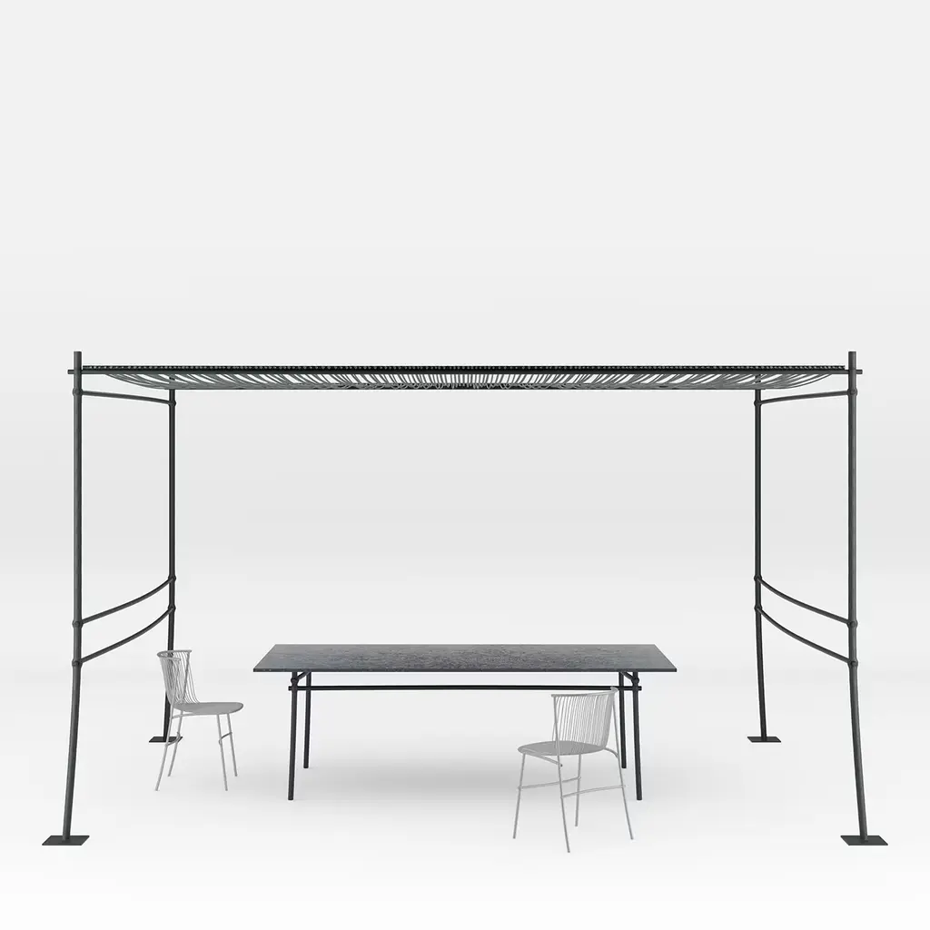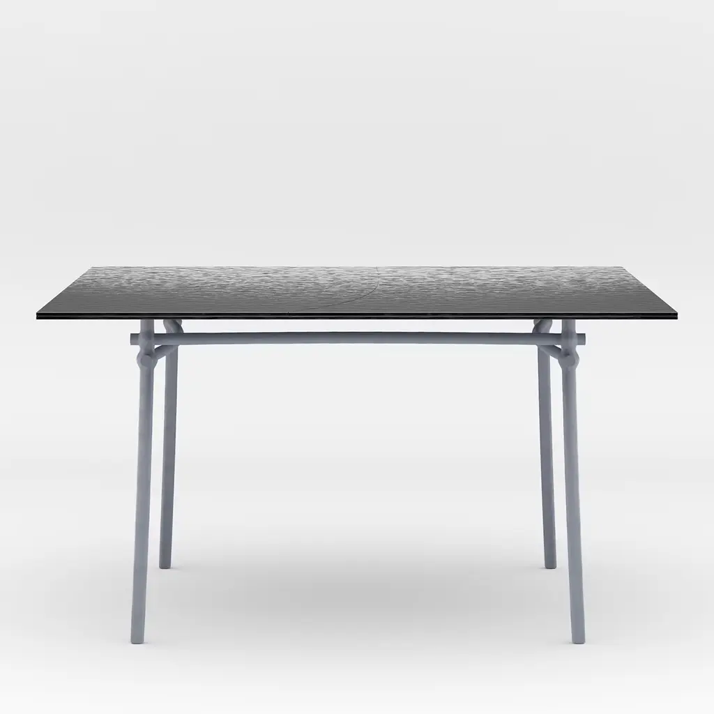 Imbued with timeless sophistication, this square dining table will exude an elegant, industrial-chic flair. Designed in collaboration with Zanellato/Bortotto, it is handcrafted of lacquered and zinc-coated metal, with a top in natural lava stone. Please consult the Artemest catalog for other available designs from this series.