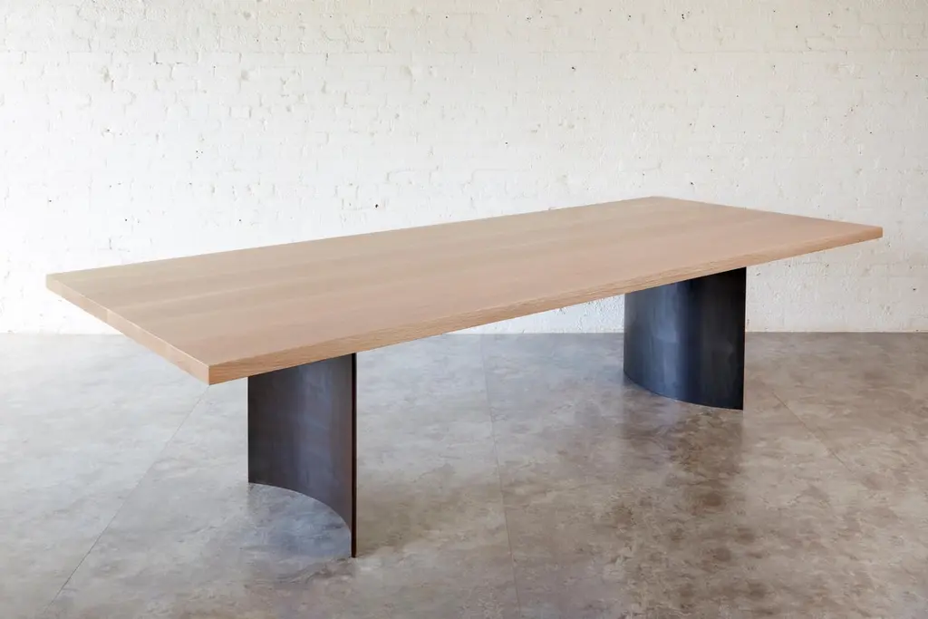Ban White Oak & Curved Steel Dining Table By Autonomous Furniture