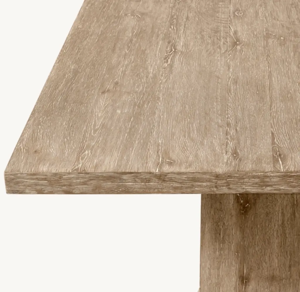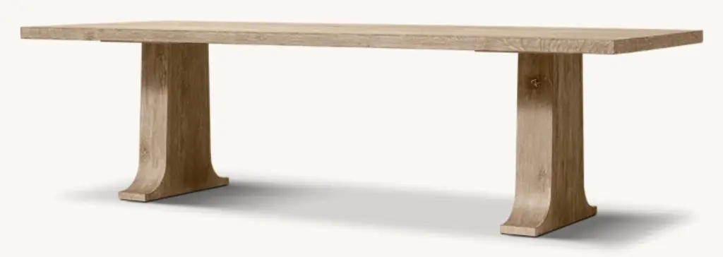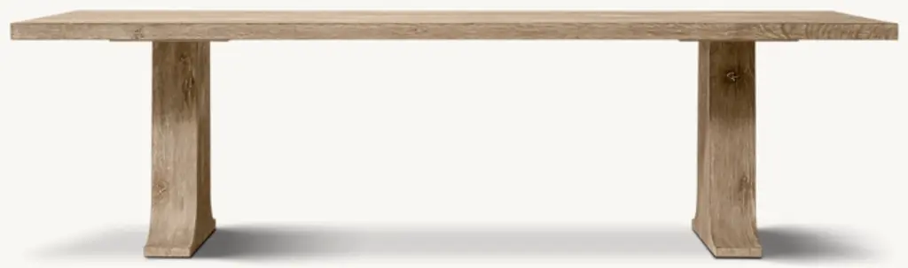 A modern incarnation of the traditional trestle table, Banbury by Alex Bernhardt, Jr., draws inspiration from an antique saddle stand found in the Cotswolds region of England. Artisan crafted of American white oak, the spare, streamlined form features a plank tabletop and elegant curved supports. A rustic, cerused finish highlights the wood's rich grain and natural imperfections.
