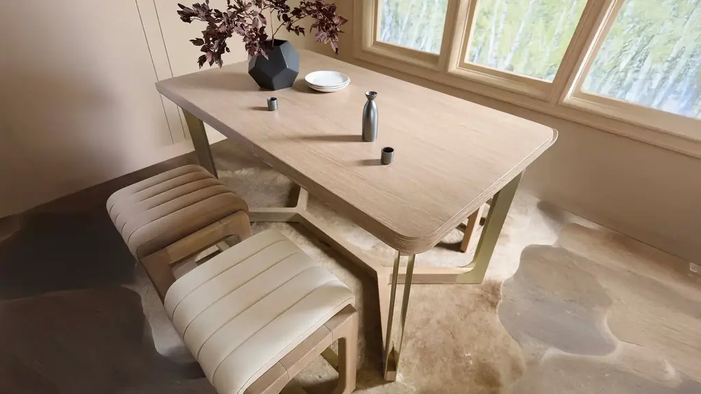 The Banyon Bay Gathering Table brings together modern style and rustic charm. Featuring a rectangular design with a white oak veneer top and metal legs in a brushed brass finish, this table is perfect for casual dining or kitchen islands. The wire-brushed Desert Oak finish highlights the natural beauty of the wood, while the counter height makes it ideal for both dining and entertaining.