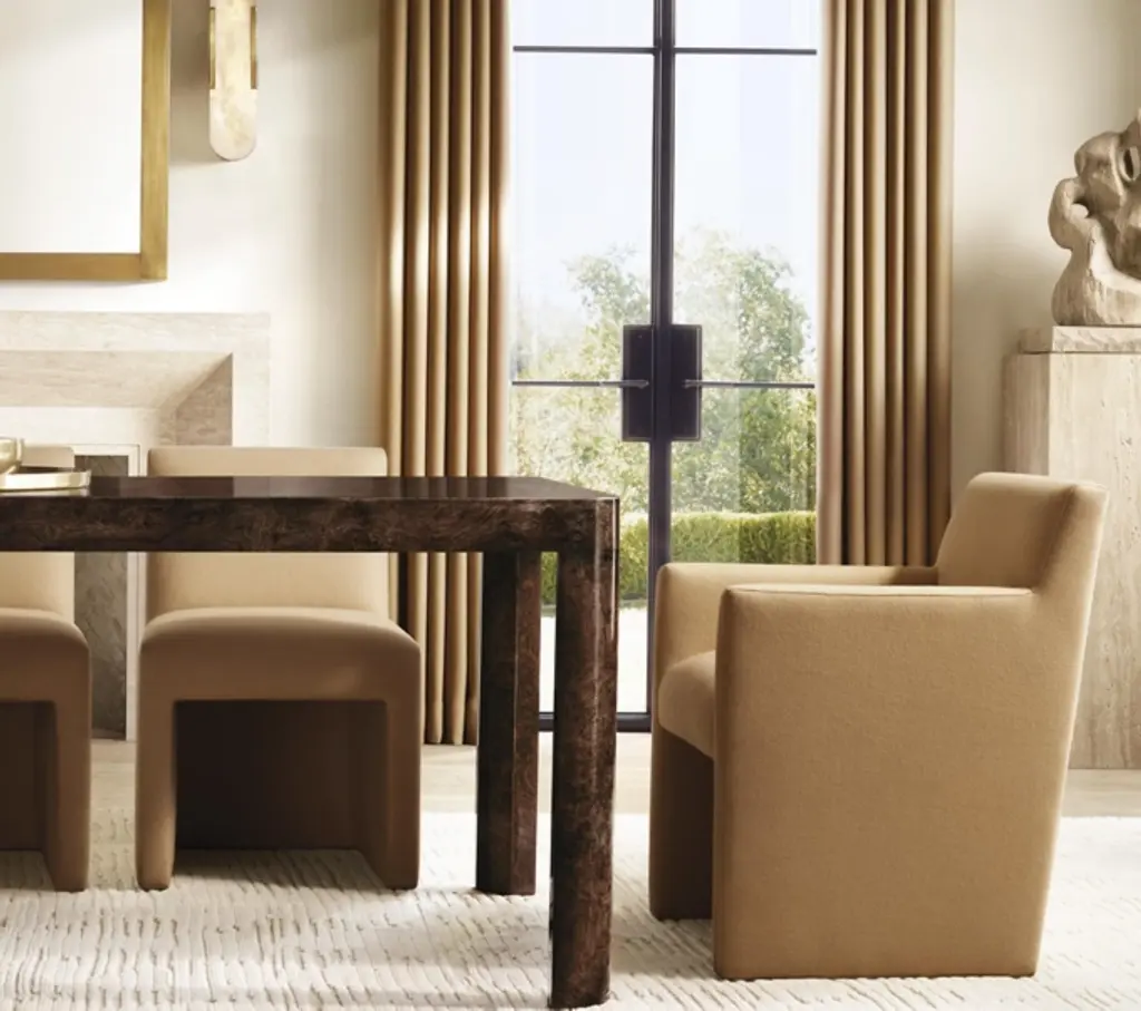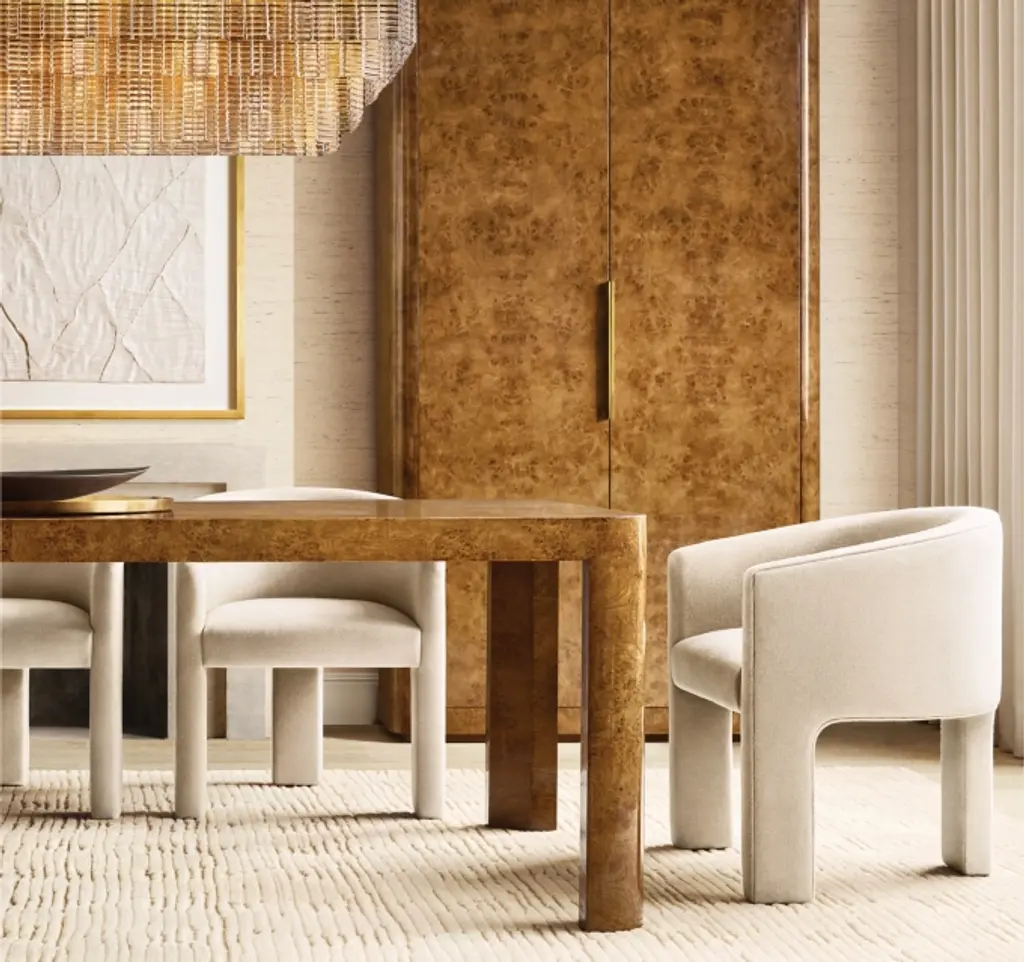 Understated and tailored in its restraint, our collection honors the minimalist geometric forms of 1970s postmodernism and the era's embrace of exotic materials. The clean, gently curved silhouettes are wrapped in burl wood veneers, which highlight the intricate, swirling grain patterns and mottled shading. Expertly cut and pieced by hand, the burl is sanded and buffed to an elegant sheen. SHOP THE ENTIRE COLLECTION