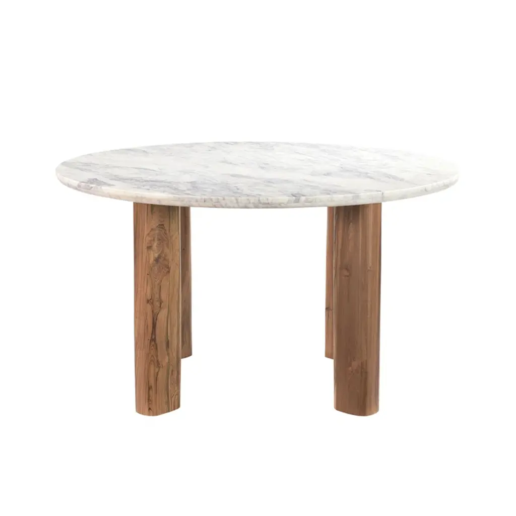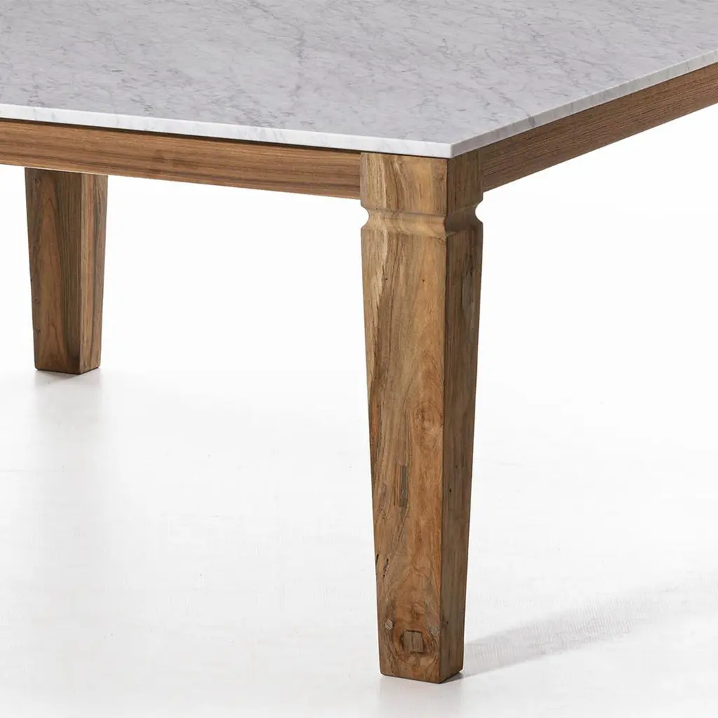 Dining Table Barletta square with structure in solid teakwood and with polished carrare white marble top.