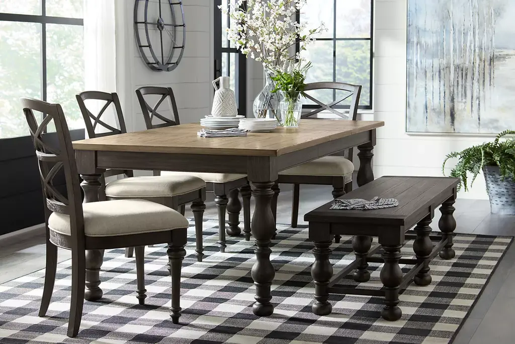 Our Barrington dining table is a showstopper that makes the perfect focal point for your dining room. This two-toned piece features a plank-style tabletop and complementary turned legs that are all finished with hand-distressing for a rustic appeal.