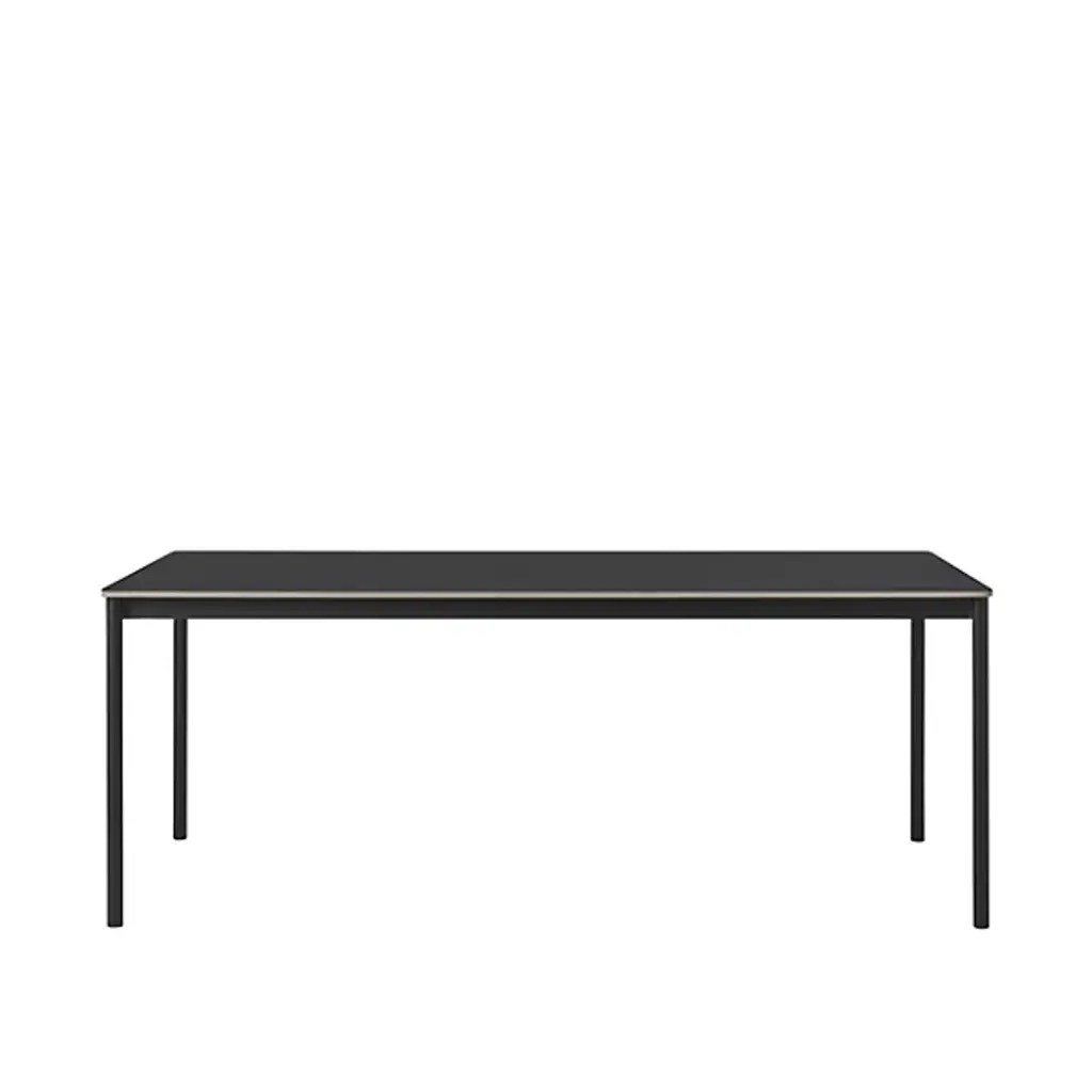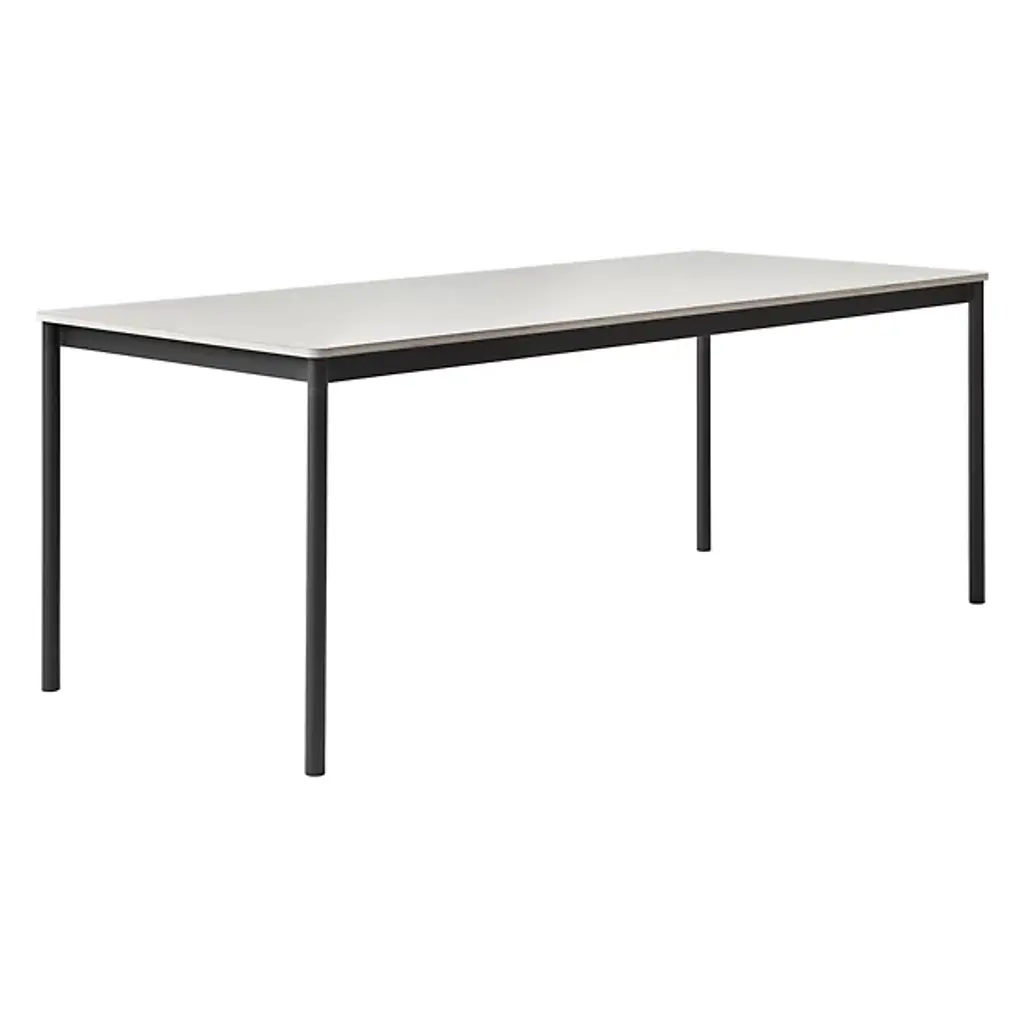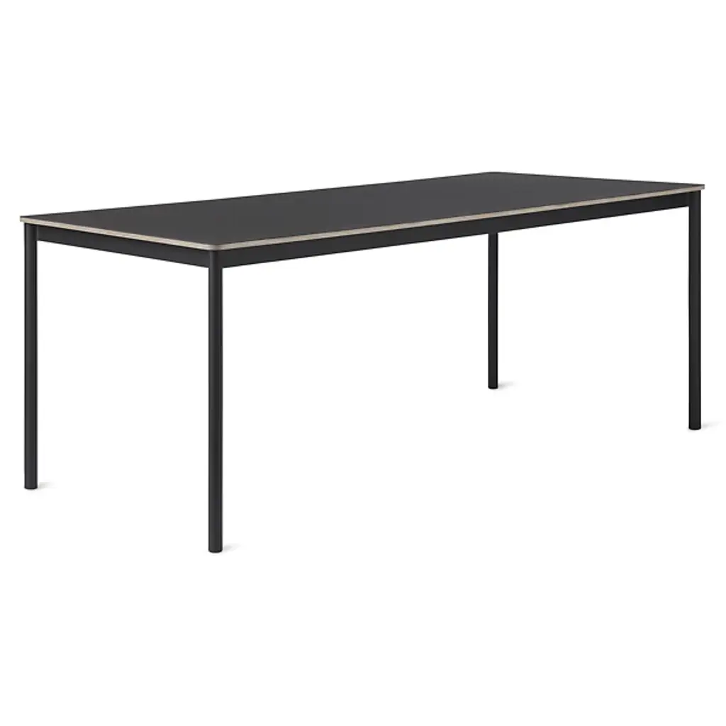 Pure elegance. The Base Table from Muuto strips down the table to its purest silhouette for versatility in functionality and aesthetics. Designer Mika Tolvanen creates pieces that are quiet and deliver on functionality. Tolvanen works on the principles of Scandinavian design in this balanced piece. The table's base draws a graphic outline with a slender aluminum construction. This base clears up leg room below for added comfort. Tolvanen highlights materiality by pairing the smooth finish of the metal base with the soft grain texture of the laminate top. The low-profile top takes a back seat to one's desk or dining arrangements