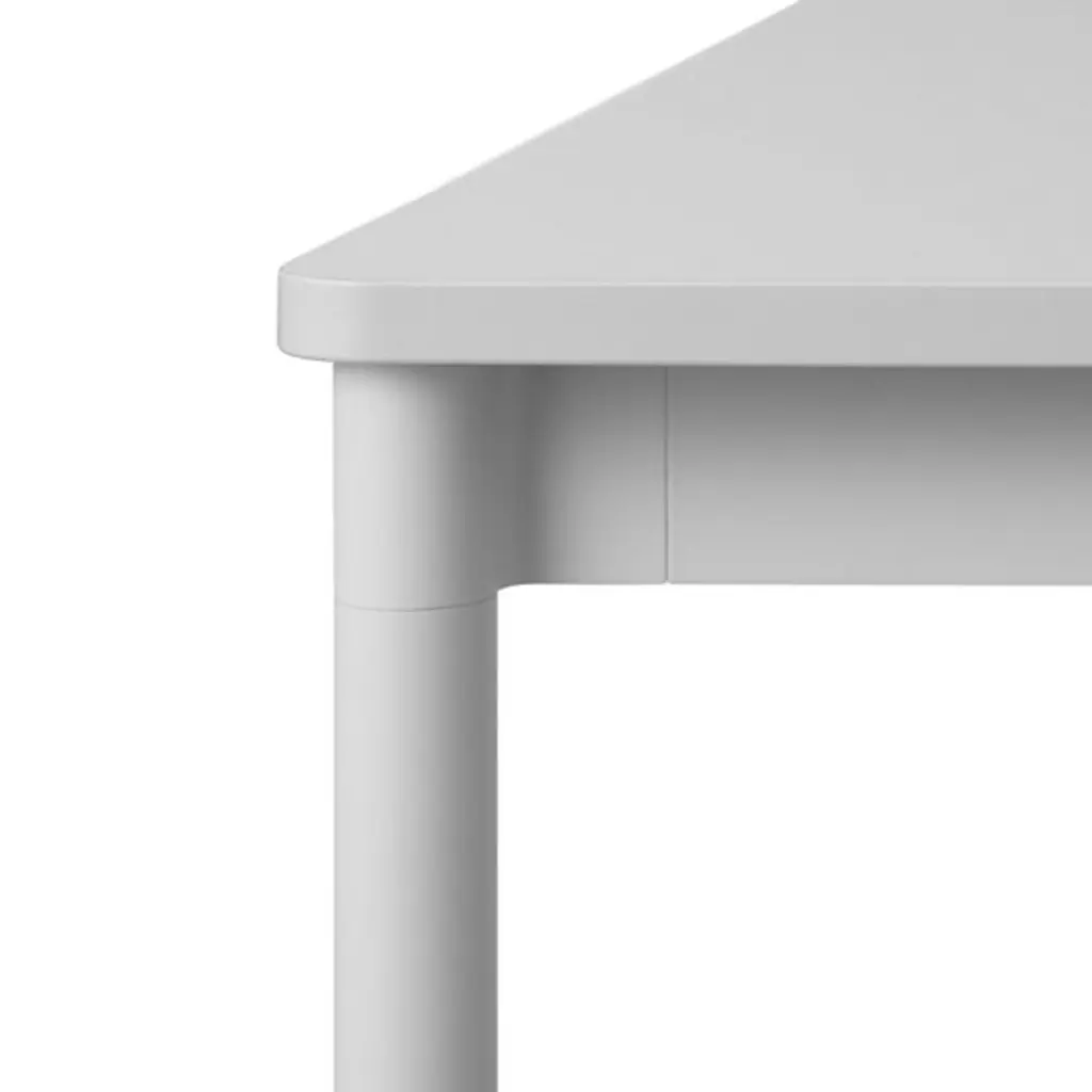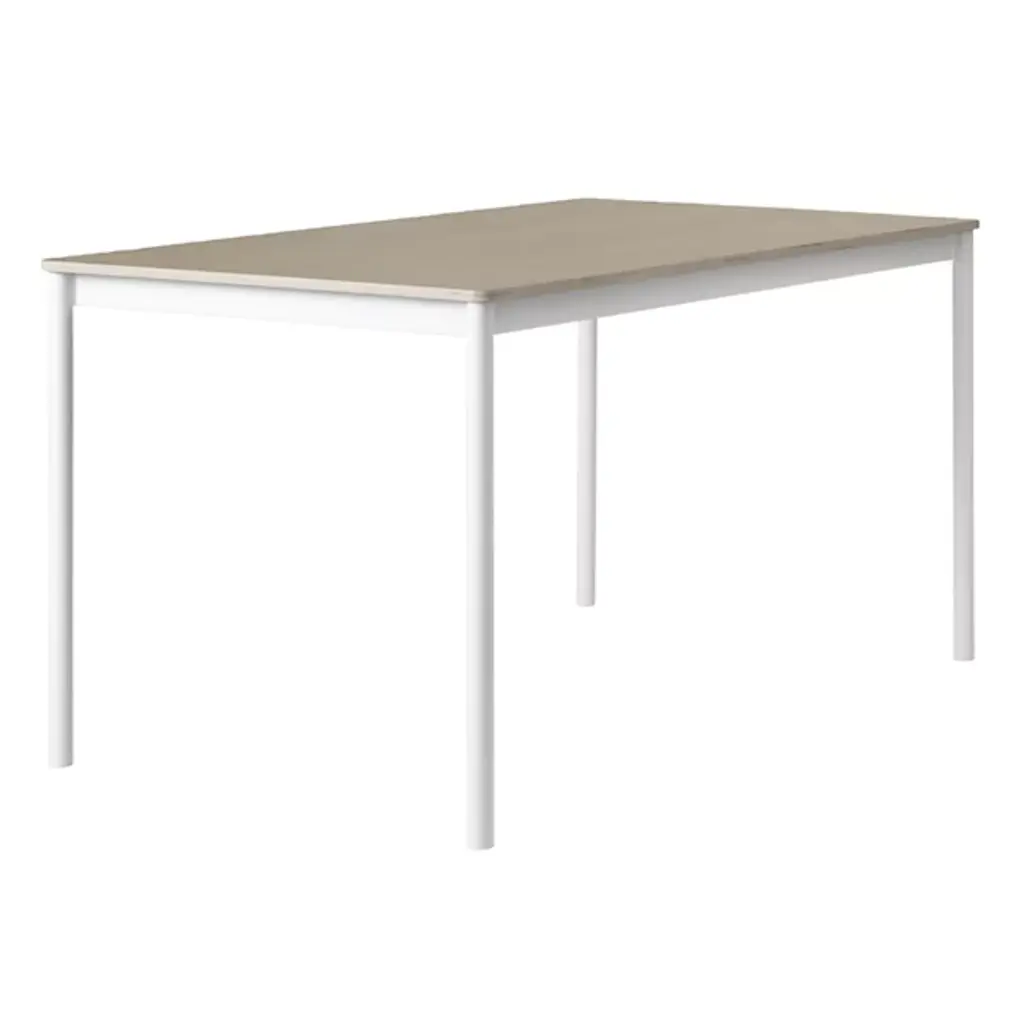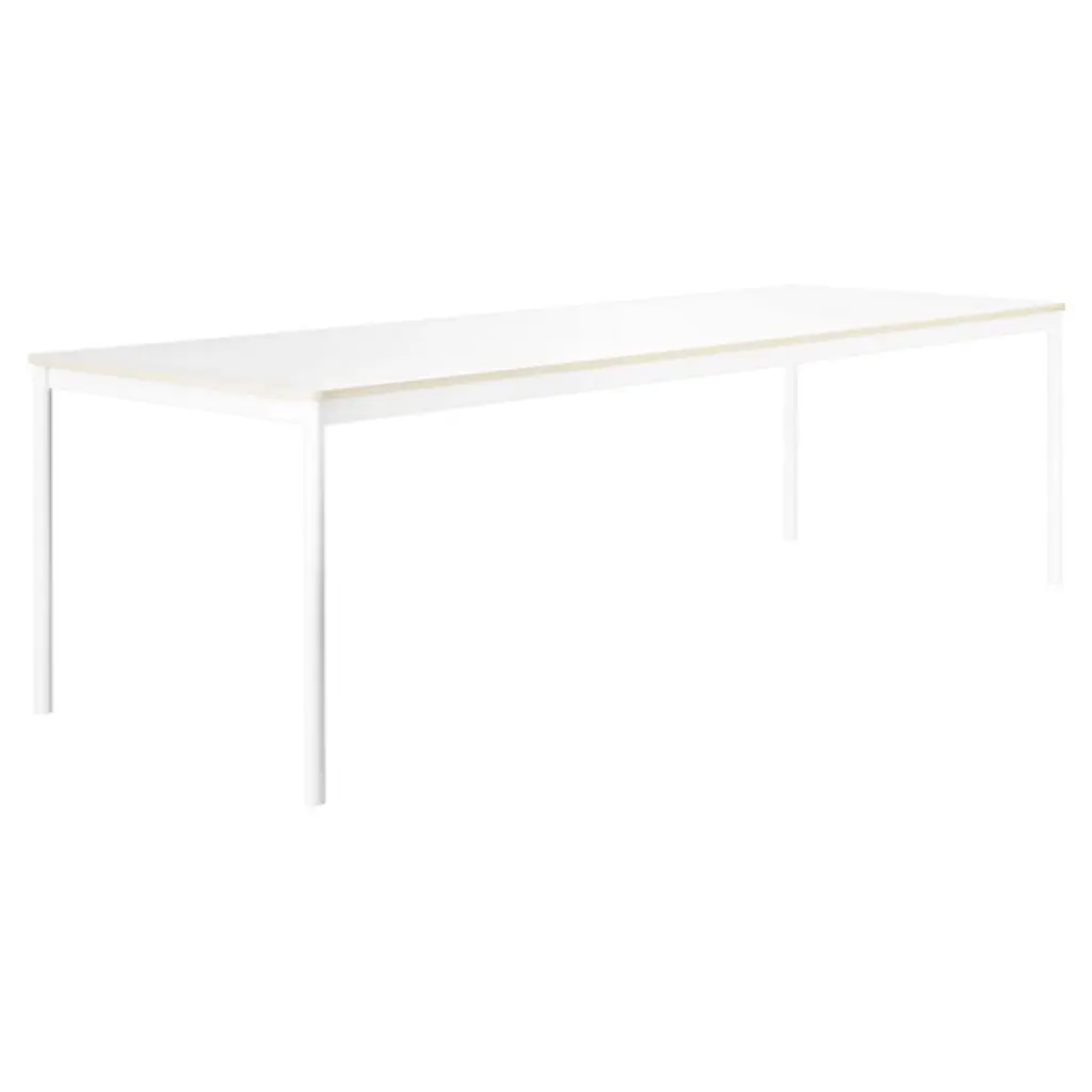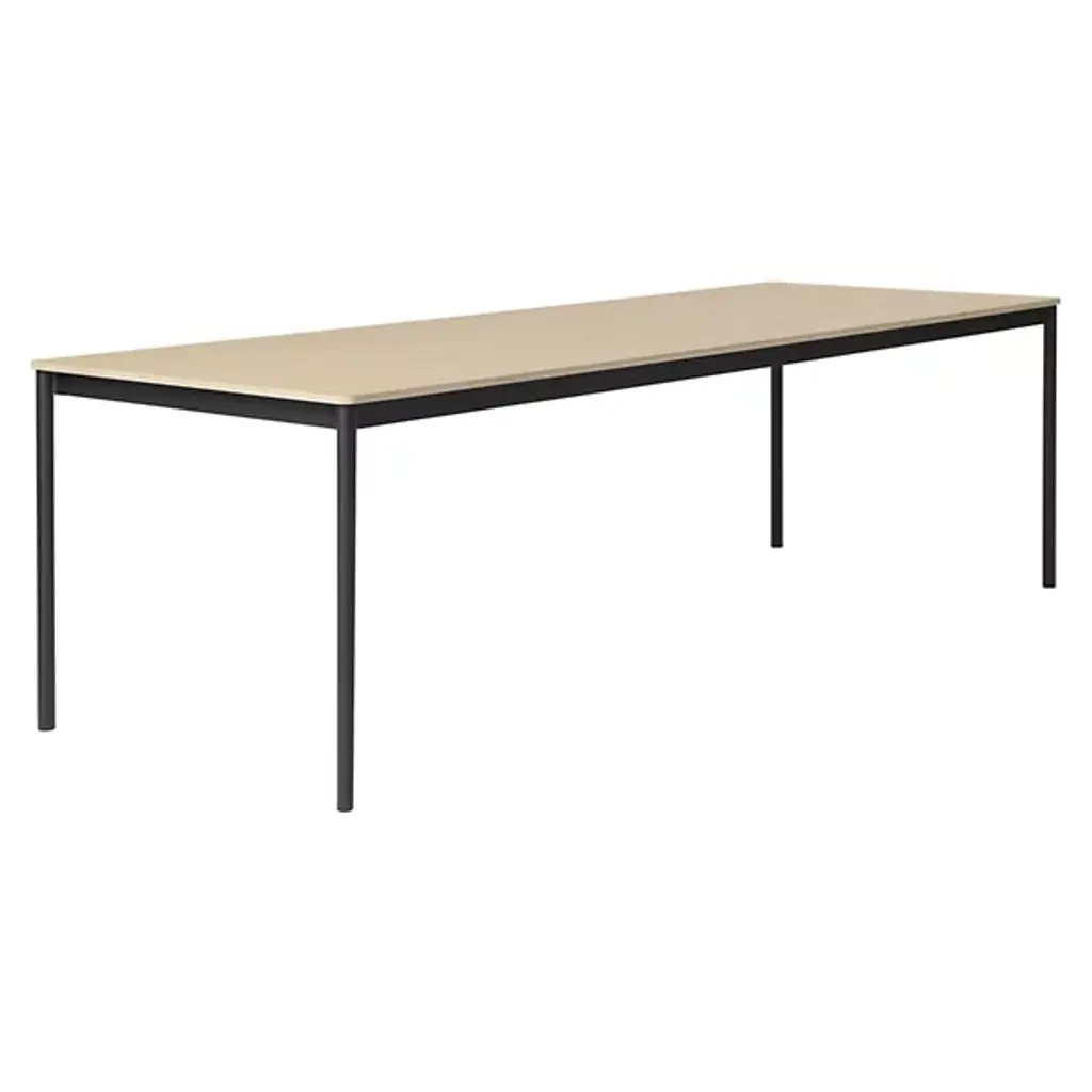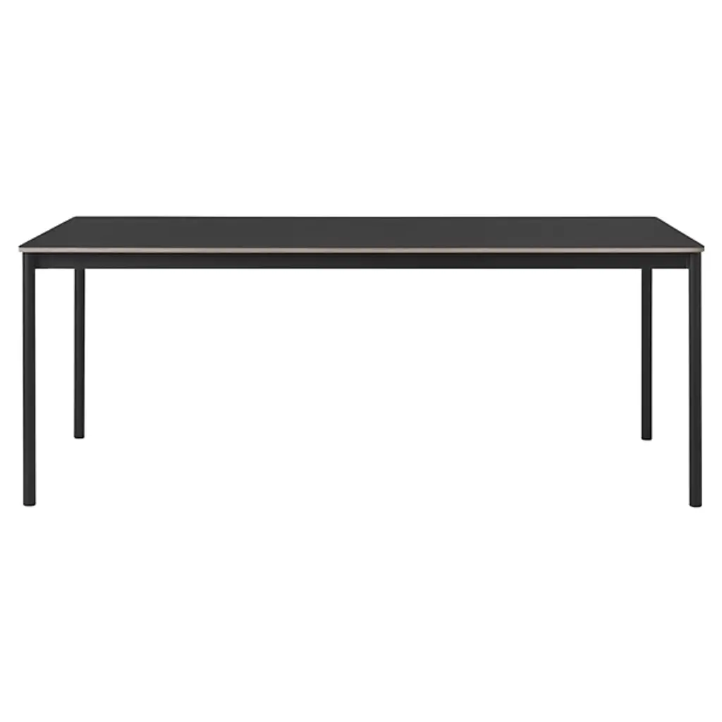 Pure elegance. The Base Table from Muuto strips down the table to its purest silhouette for versatility in functionality and aesthetics. Designer Mika Tolvanen creates pieces that are quiet and deliver on functionality. Tolvanen works on the principles of Scandinavian design in this balanced piece. The table's base draws a graphic outline with a slender aluminum construction. This base clears up leg room below for added comfort. Tolvanen highlights materiality by pairing the smooth finish of the metal base with the soft grain texture of the laminate top. The low-profile top takes a back seat to one's desk or dining arrangements