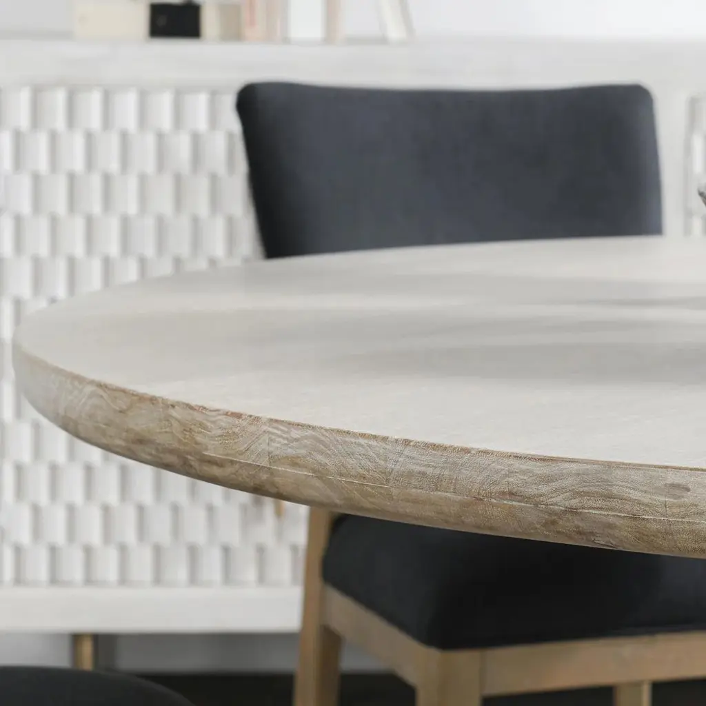 Beatrix Updated Traditional White Washed Mango Wood Round Dining Table - 60"