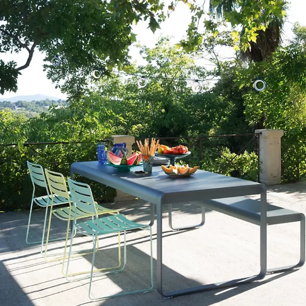 Experience the joy of outdoor dining with the Fermob Bellevie Table by Fermob, where elegance meets durability. This contemporary table boasts a sleek, elongated design with rounded edges, crafted from robust aluminum. Its anti-UV powder coating ensures a vibrant, lasting finish available in a multitude of colors. Perfect for creating memorable gatherings, the Bellevie Table offers ample space for friends and family to come together and enjoy alfresco meals. Built to withstand the elements, it promises to be a beloved centerpiece for your outdoor space for many years to come.
