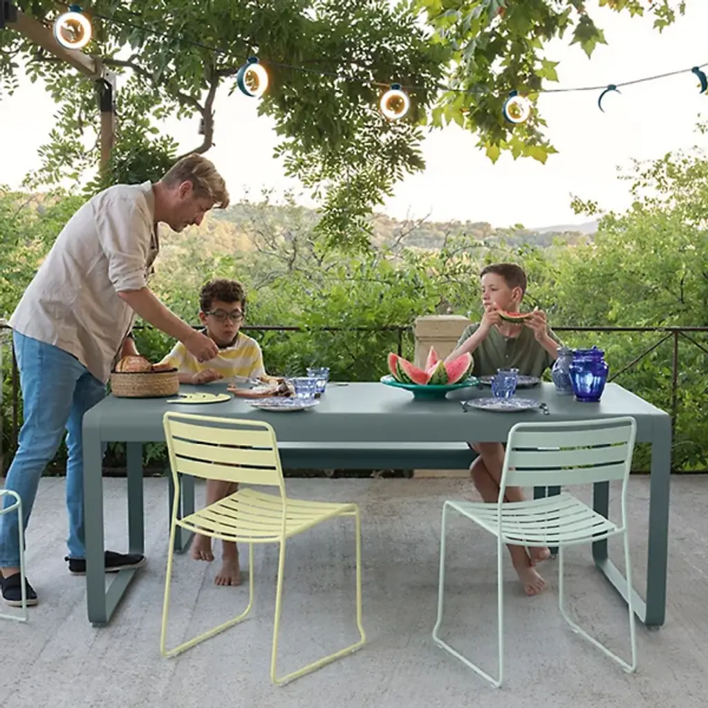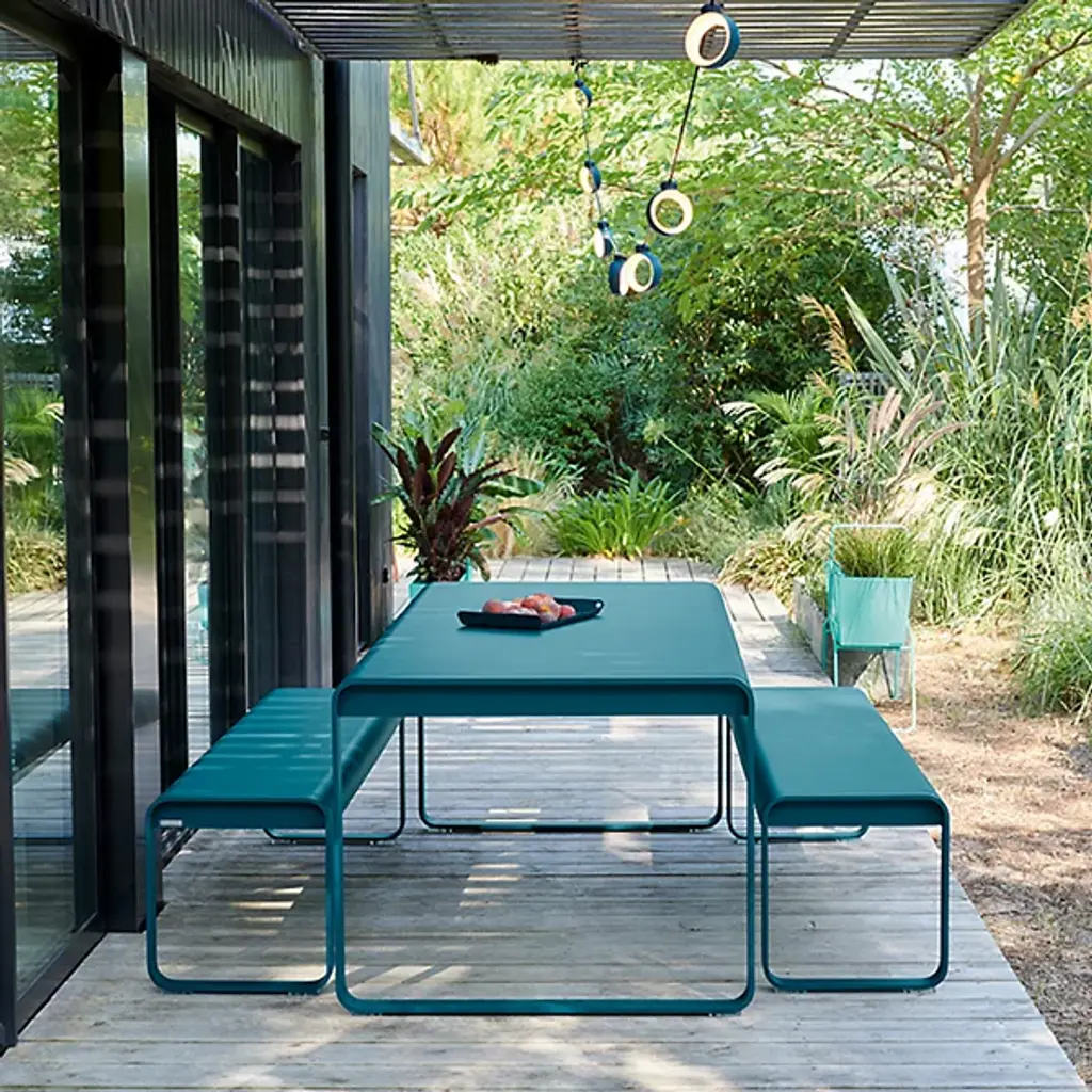 Experience the joy of outdoor dining with the Fermob Bellevie Table by Fermob, where elegance meets durability. This contemporary table boasts a sleek, elongated design with rounded edges, crafted from robust aluminum. Its anti-UV powder coating ensures a vibrant, lasting finish available in a multitude of colors. Perfect for creating memorable gatherings, the Bellevie Table offers ample space for friends and family to come together and enjoy alfresco meals. Built to withstand the elements, it promises to be a beloved centerpiece for your outdoor space for many years to come.