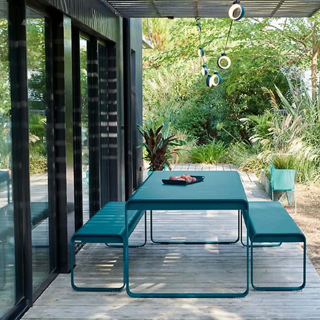 Experience the joy of outdoor dining with the Fermob Bellevie Table by Fermob, where elegance meets durability. This contemporary table boasts a sleek, elongated design with rounded edges, crafted from robust aluminum. Its anti-UV powder coating ensures a vibrant, lasting finish available in a multitude of colors. Perfect for creating memorable gatherings, the Bellevie Table offers ample space for friends and family to come together and enjoy alfresco meals. Built to withstand the elements, it promises to be a beloved centerpiece for your outdoor space for many years to come.