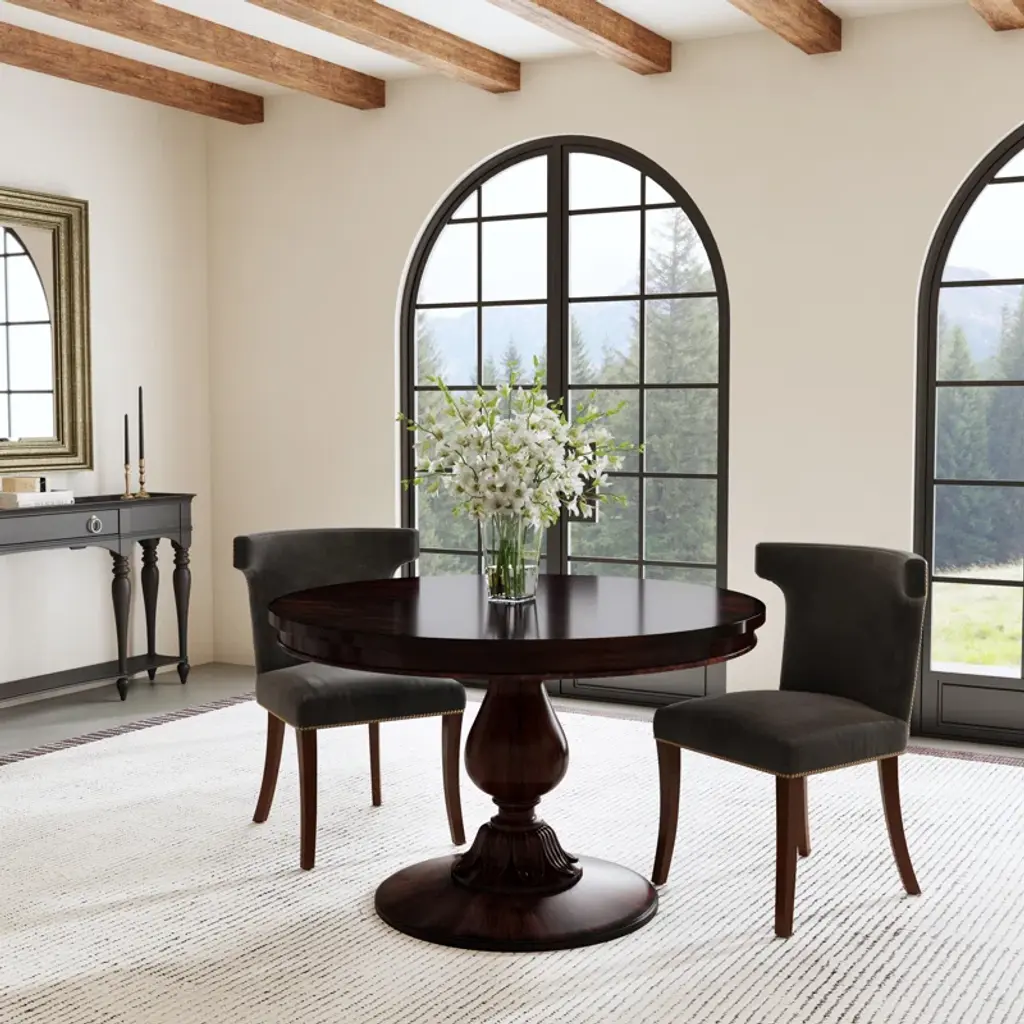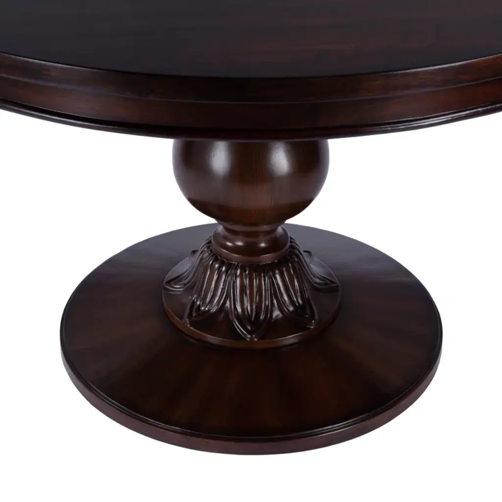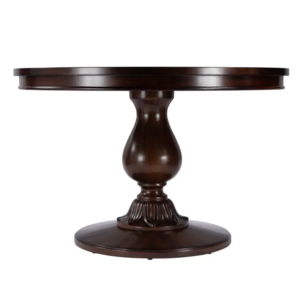 This table brings elegance to your dining area. It offers a blend of durability and style that stands the test of time. The round shape creates an intimate setting, perfect for both family meals and entertaining guests. Whether placed in a cozy kitchen nook or a formal dining room, this table enhances the space with its classic charm.
