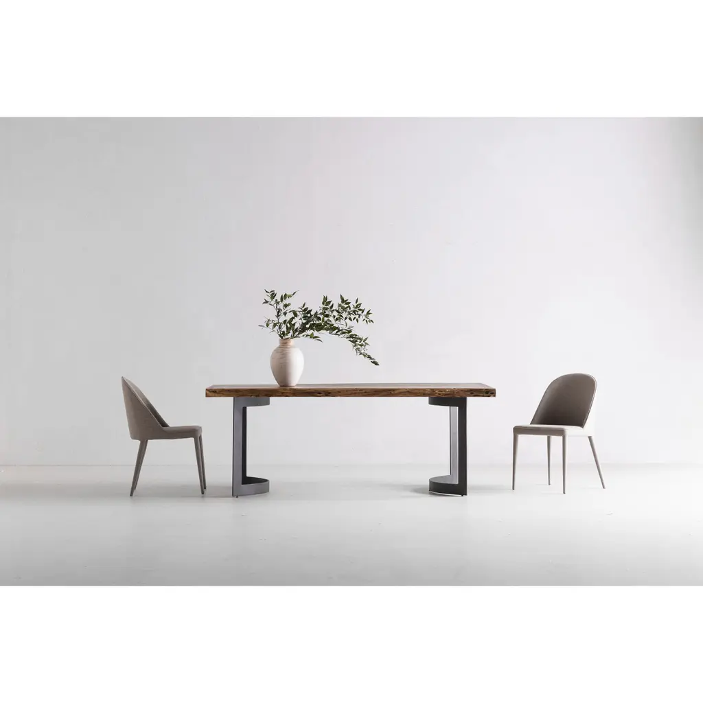 The Bent collection puts nature’s craft front and center. Made of beautiful solid acacia wood, rustic live edge detailing shows off the unique knots and whorls of the wood. This dining table’s expansive surface beautifully showcases the wood’s personality, and is offset by a sturdy industrial metal base. Pair with other pieces in the Bent collection for a complete look.