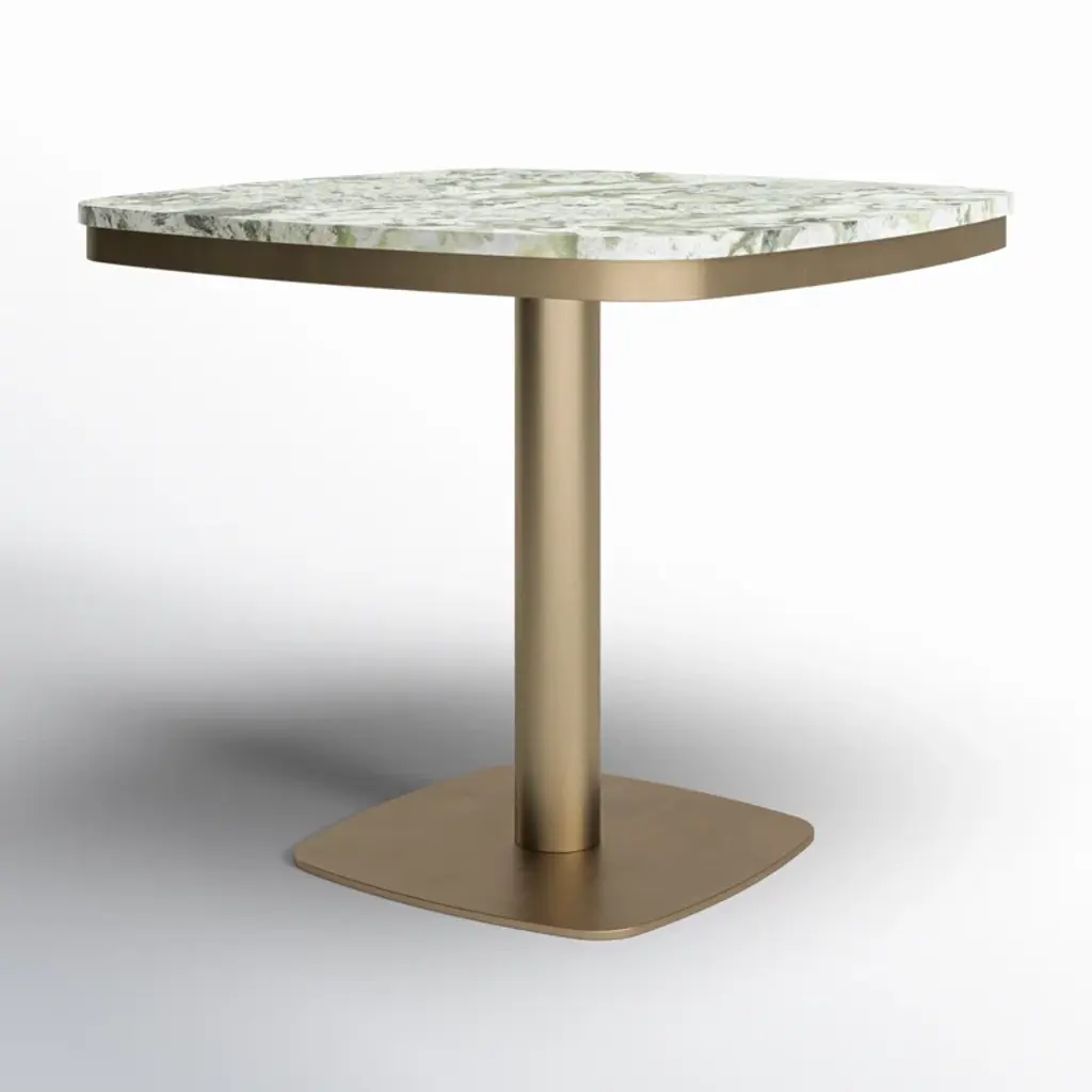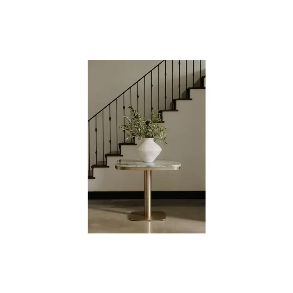 The Bernay table is a beautiful blend of modern design and enduring elegance. Featuring a green onyx marble top and antiqued-brass iron base, this table is designed to stand the test of time and develop a lovely patina. Its unique combination of natural stone and brass tones is both playfully inviting and sophisticatedly chic.
