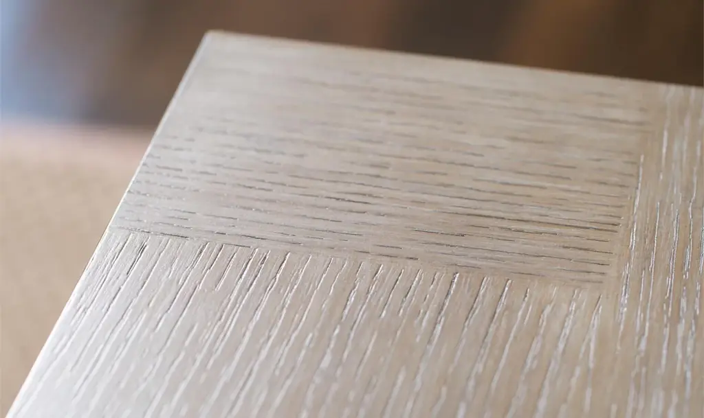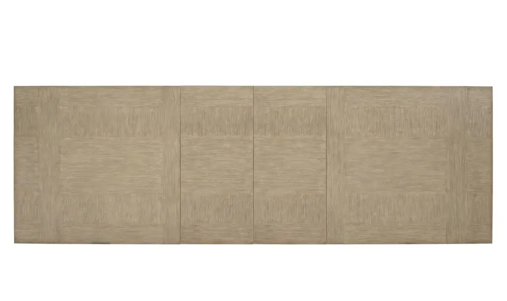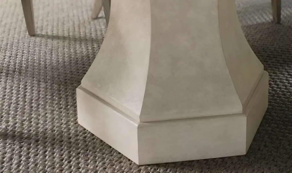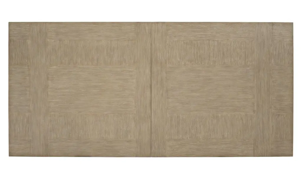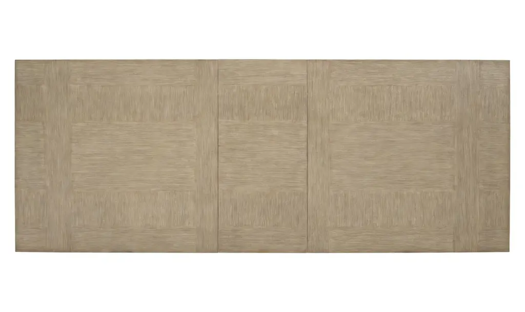 Are you ready to transform your dining space beautifully? Buckle up because the exquisite Bernhardt Santa Rectangle Barbara Dining Table is here to increase the aesthetics and functionality of your dining area.The Bernhardt Santa Rectangle Barbara Dining Table has a beautiful sandstone finish that effortlessly infuses your dining area with tremendous elegance. With its clean lines, sleek silhouette, and classic double pedestal base with a unique hexagon shape, it's a showstopper in any interior setting. This Dining Table is crafted from a blend of wire-brushed, cerused oak veneers in a warm Sandstone finish and has unmatched durability and style. The textured cameo finish on the table's top adds depth and character, while the cast hexagon-shaped pedestal base makes it extra luxurious.What good is a beautiful dining table if it doesn't serve its purpose, right? Well, fear not because this table has got you covered. With its removable leaf mechanism, you can easily extend the table to accommodate extra guests. Additionally, with adjustable glides, this table stays steady and stable, no matter the surface.
