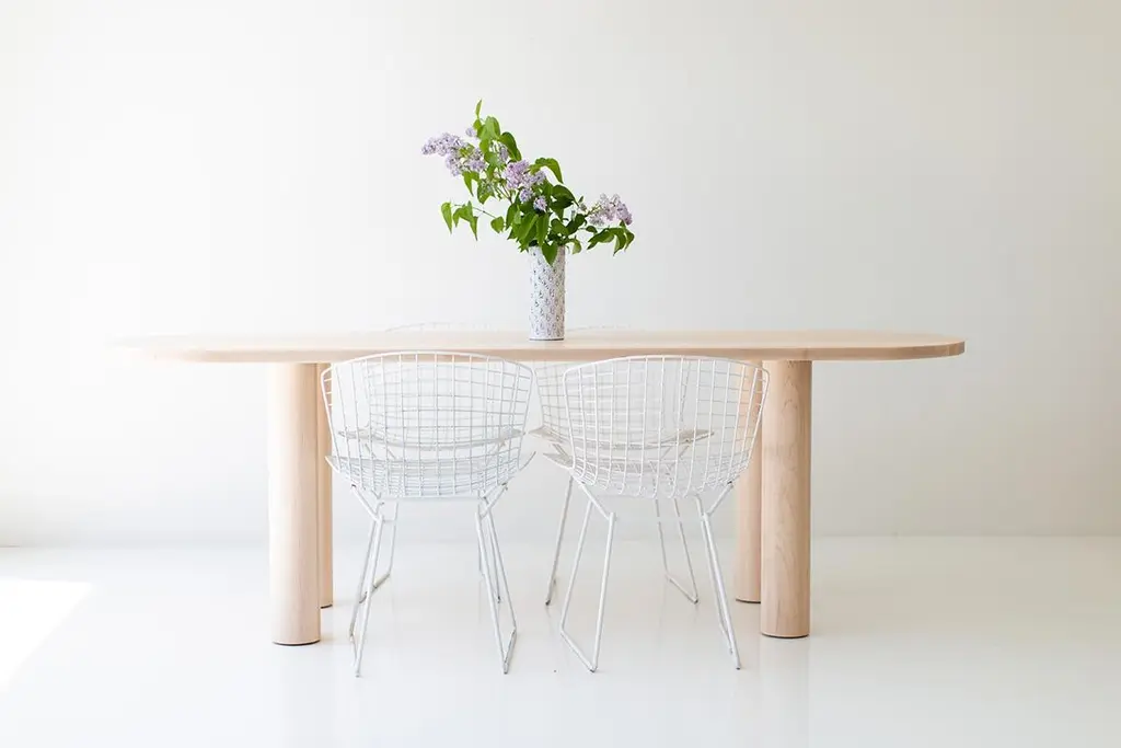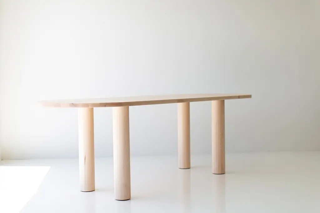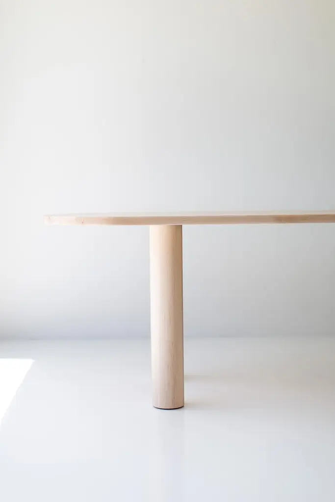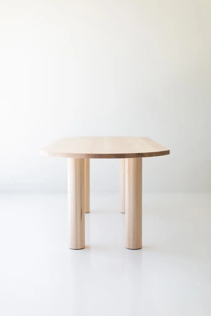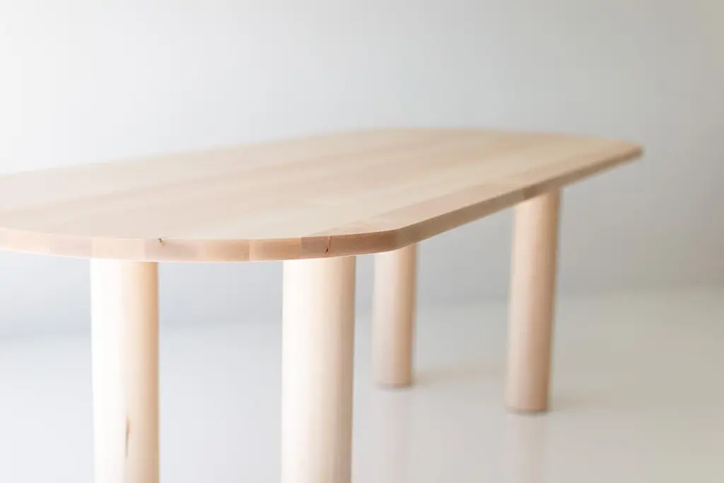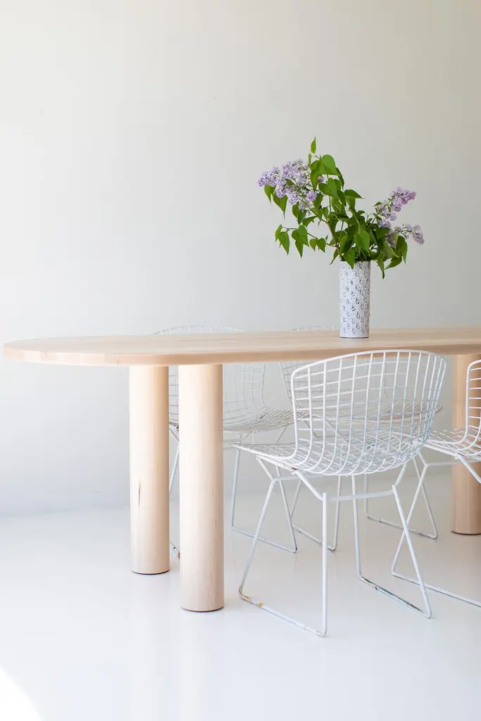 Bertu Dining Table, Modern Oval Dining Table, Dining Table, Maple, CavaThis Cava Modern Oval Dining Table is made in the heart of Ohio with locally sourced wood. We use the table both as a dining table and desk. Each table is hand-made in solid white maple and finished with a beautiful clear commercial-grade finish (other finishes and wood species available). Each board is hand selected to give the top the a beautiful smooth look. It's the perfect light color to mix and match with any dining chair. We also love how fresh and chunky the leg design feels. It makes a statement while feeling crisp and clean in a space. specsPeriod/Model: New; Mid Century Modern InspiredSpecs: Maple, Commercial-grade finishCustomizable: Yes! It's what we do :)dimensionsH: 30"L: 90"D: 36"SKU: Bertu Dining Table, Modern Oval Dining Table, Dining Table, Maple, Cava