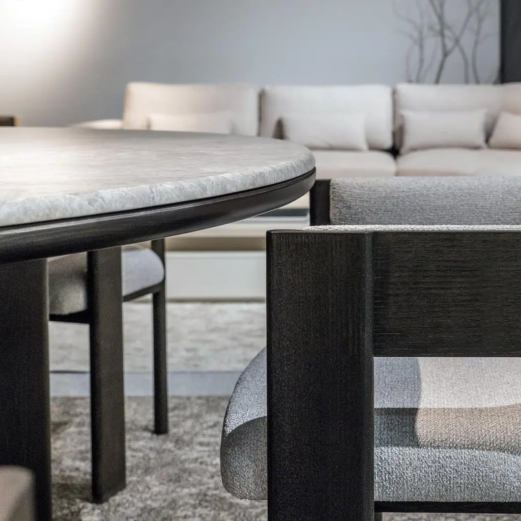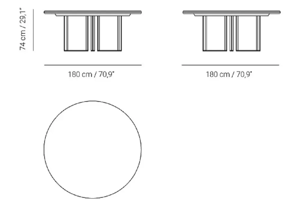This dining table captivates with its extraordinary design, boasting a round marble top delicately upheld by three elegantly arranged legs. Its generous 180 cm diameter provides ample space for comfortably seating 8 to 10 diners, elevating both functionality and style in your gatherings. This harmonious blend of materials renders tis dining table a truly remarkable piece of furniture. Inspired by meticulous craftsmanship and haute couture, these tables offer unparalleled versatility. Adorned with an elegant marble top, they provide a customizable experience with finishes tailored to reflect the uniqueness of each space. Rotating table top lazy Susan avaiable upon request.Our pricing includes all costs for international shipping to the U.S., as well as duties and customs clearance fees. Please be aware that local delivery within the U.S. is not included. We offer white glove, front door, and warehouse delivery options. For shipments outside the U.S., kindly reach out to us for a detailed quote.We do our best to expedite production and to ship and deliver product within the listed lead time, however current lead times might be longer due to global shipping backlog and delays. These delays are out of our control and cannot be a reason to cancel an order.