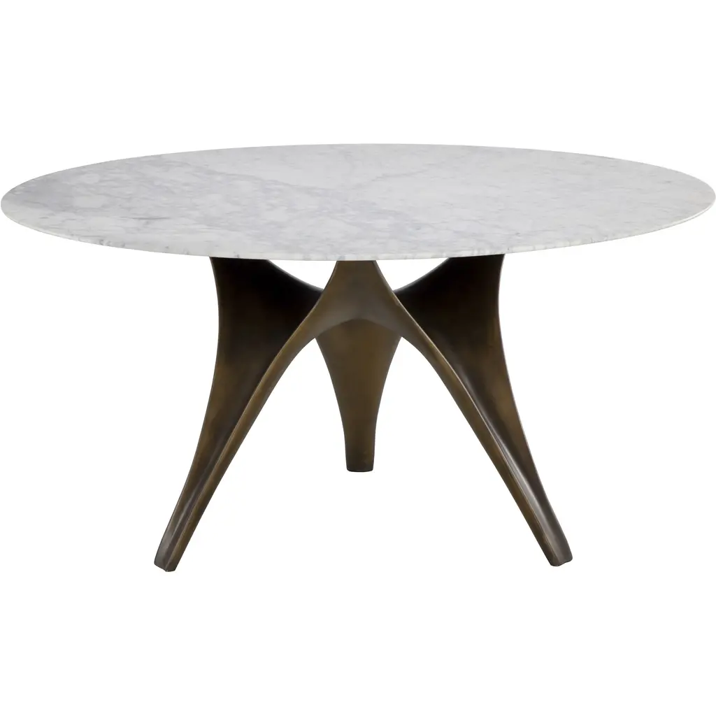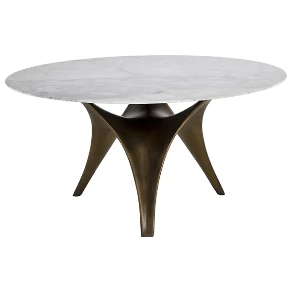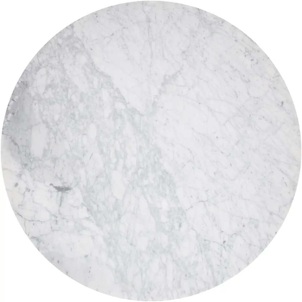 Make a statement with the Bijon Dining Table. Distinguished by its strong sculptural base made from a polyurethane mould with steel and wood in a powder-coated finish. A matte white Carrara marble top adds a sense of intrigue to tie the piece together. As marble is a natural material, unique veining, pitting, fissures, micro-cracks and colour variations are all characteristics that add to the uniqueness and beauty of each piece.
