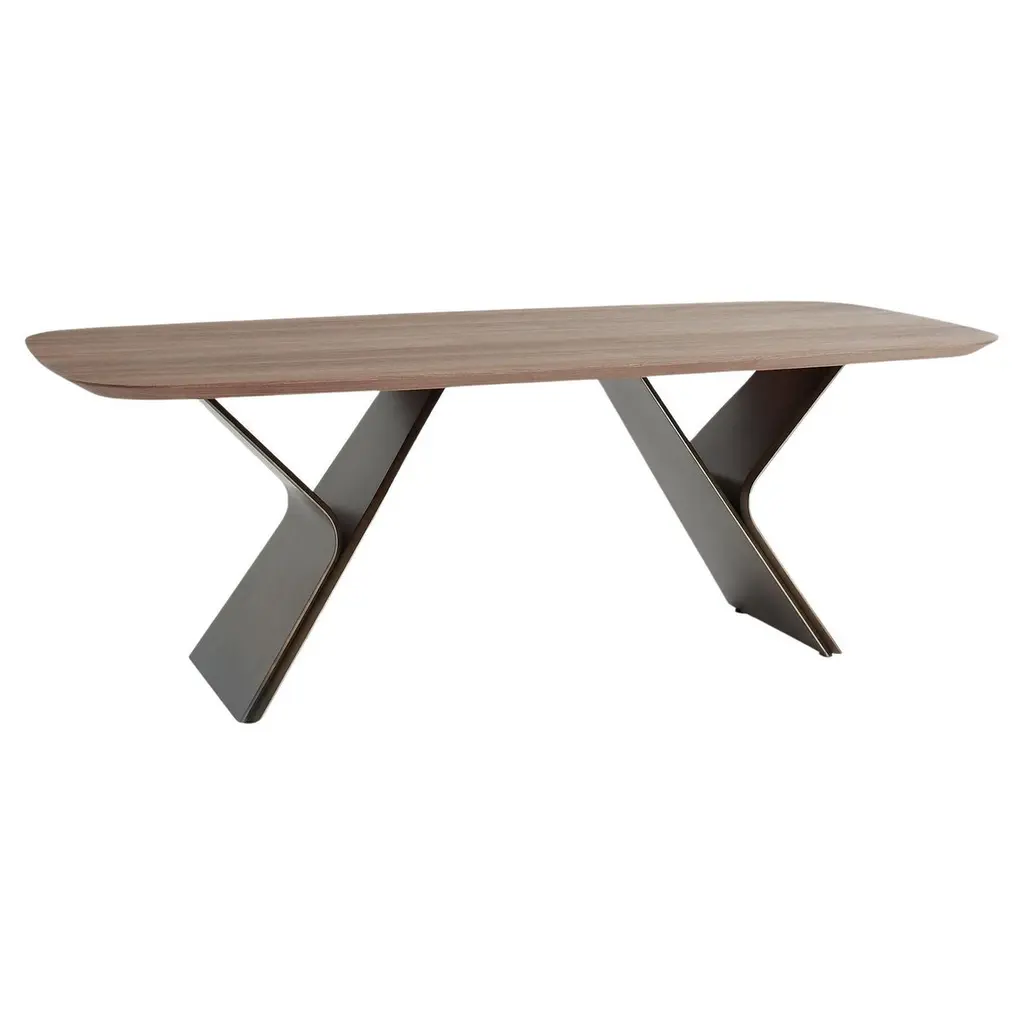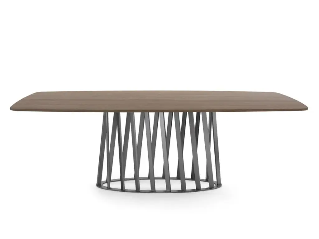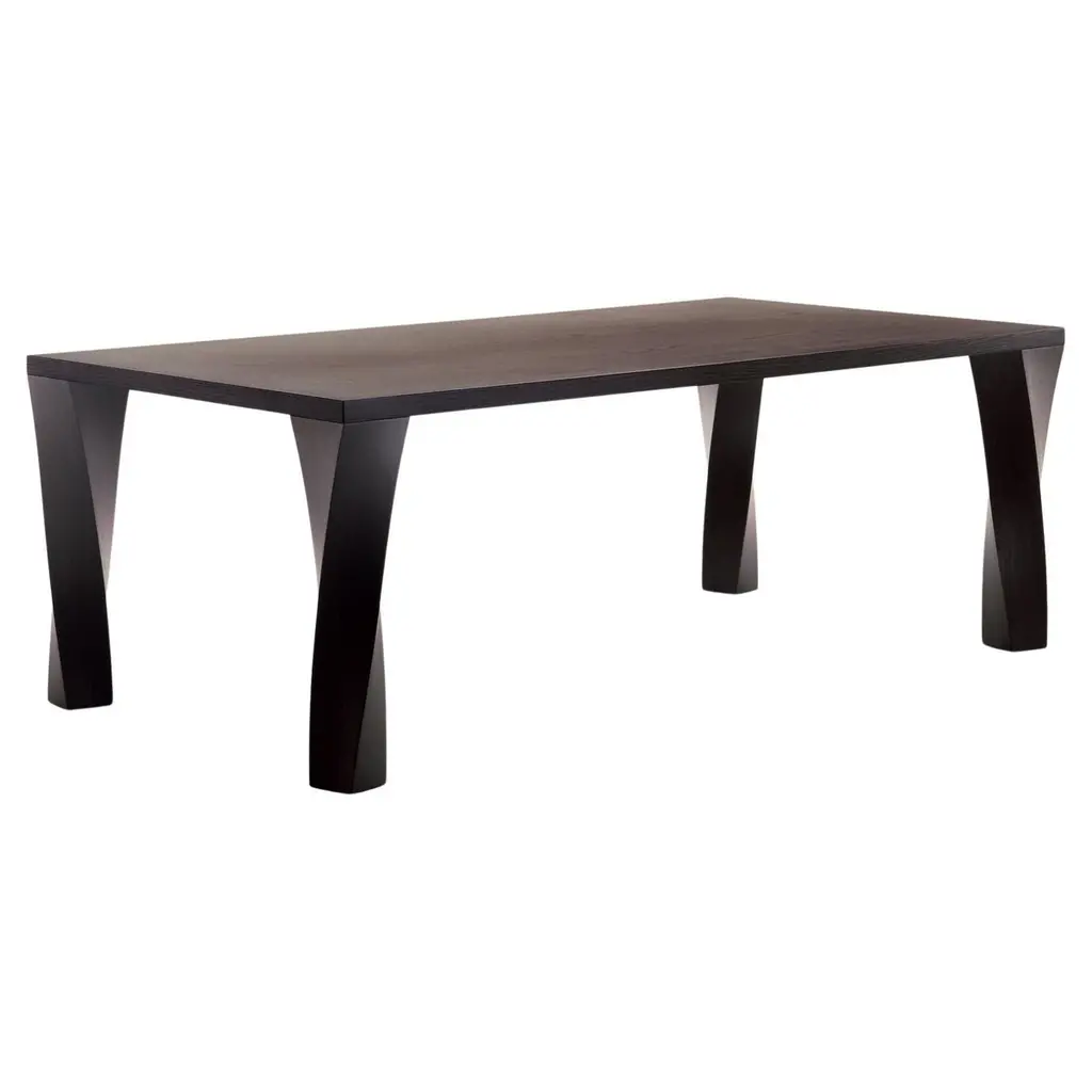 Bipede medium table comes with a 10 mm thick steel base, varnished in black. However if you would like your base varnished in white, anthracite or bronze. The top is available in tempered clear glass or in flamed oak, Canaletto walnut, heattreated oak or black ash. Here you are shown the Bipede dining table with varnished black steel base and in size medium. The Bipede dining table is also available in sizes small, and large.Additional information:Dimensions: Medium table top height 4cm, overall table height 75 cm, width of table 240 cm, depth of table: 115 cm.Top finishes available in: flamed oak, Canaletto walnut, heattreated oak, black ash.Base finishes: offered in steel base with varnished black, if interested in white, anthracite or bronze.Available in different sizes: small (table top height 4cm, overall table height 75 cm, width of table 200 cm, depth of table 115 cm.), and large (table top height 4cm, overall table height 75 cm, width of table: 300 cm, depth of table: 115 cm. Prices may vary.VAT not included.