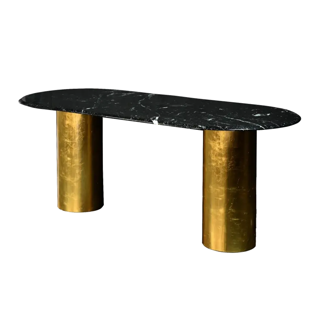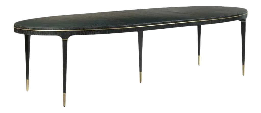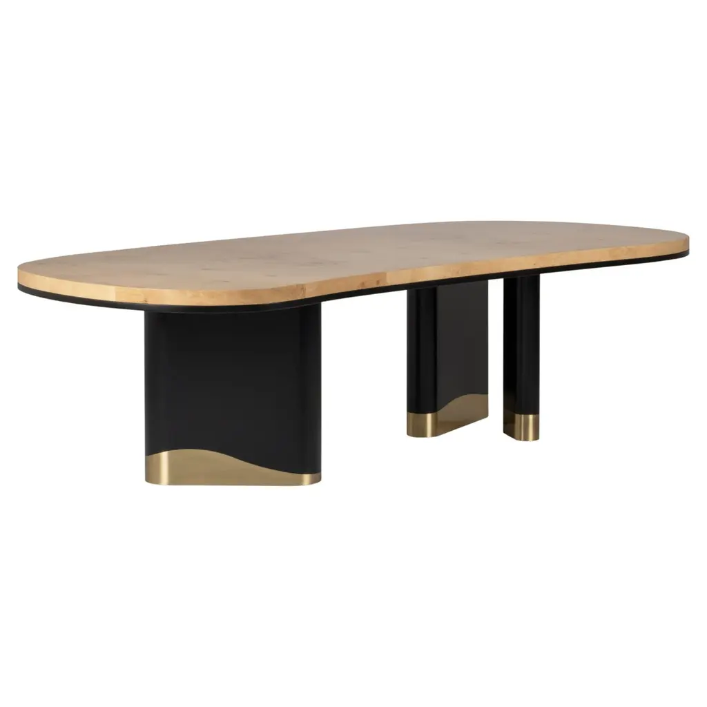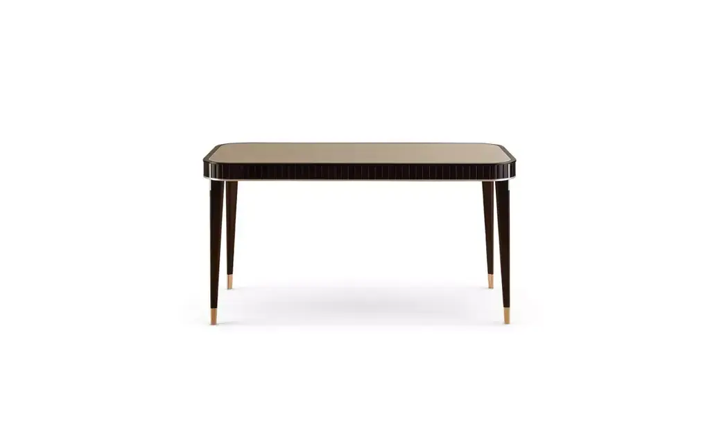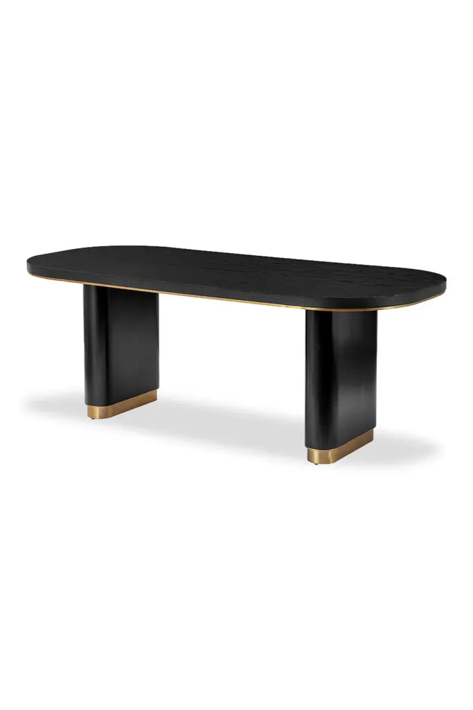 Enjoy a delightful dining experience with the Chaplin Dining Table. Each individual artisan is crafted from a wooden structure and artistically enhanced by the mesmerizing Black Ash Veneer top and the beautiful brushed brass decorative trim around the table top which makes the Chaplin instantly enrich your interior aesthetic. Perfect for pairing with stylish, statement chairs, the table would work well in a contemporary or cosmopolitan space, owning a mid-century mood. Suitable for 8 seating.
