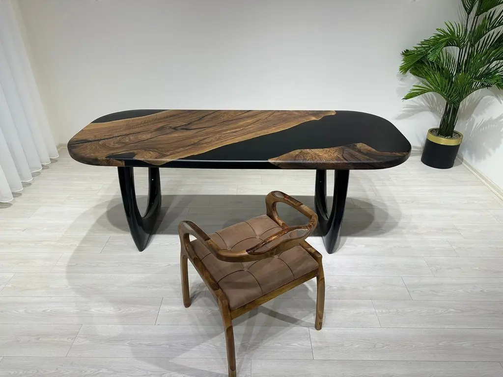 Type of Wood: Black Walnut WoodDimensions: 72 x 36Leg Model: MetalCustomizable: Available!Production Time: 3 WeeksShipping Cost: Free!Package Method: Wooden PalletRiver dining table is made of walnut wood. Our wood river tables are crafted by skilled artisans. Whether you seek a modern touch or a natural feel, our tables offer unique options to suit any style.We customize all of our furnitures (dining tables, coffee tables, tv units, consoles etc..) in terms of epoxy / glass colour, type of wood, finishes etc..Before start the production process, we send the pics of the wood options within a frame. If you like the shape of the slabs, then we start the production process.If you don't like the legs, you may also change them!We deliver our tables by DHL. It generally takes 5-9 days.