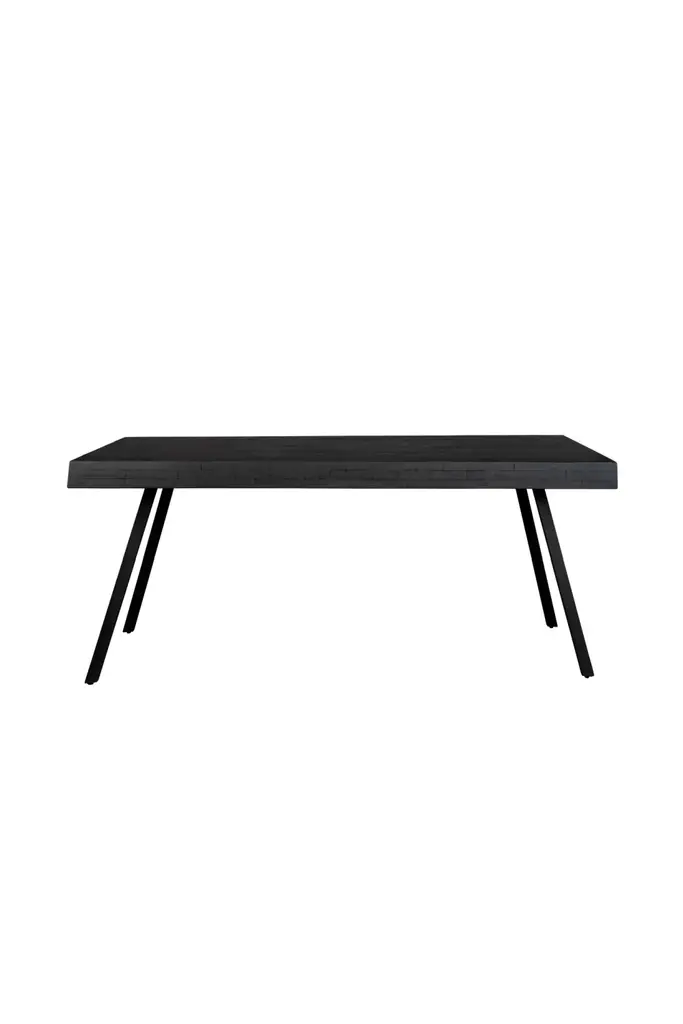 Suri by DF is a sleek and simply stylish dining table crafted from lacquered teak wood. Its chunky rectangular tabletop is supported by flared black metal legs. Versatile, durable, and functional - this dining table is definitely a bang for your buck.