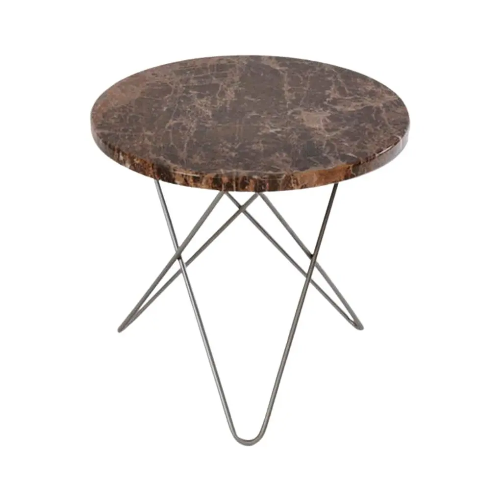 Black Marquina marble and steel dining O table by OxDenmarqDimensions: D 80 x H 72 cmMaterials: Steel, Black Marquina MarbleAlso Available: Different marble and frame options available.OX DENMARQ is a Danish design brand aspiring to make beautiful handmade furniture, accessories and lighting in natural high-quality materials in fair prices. " When we set out back in 2003, we were primarily working with vegetable-tanned saddle leather thus the name OX was a tribute to our unique leather and the animal providing it.The other half of our name, DENMARQ, is chosen to emphasize that we are a Danish design brand based on the Danish design tradition and that most of our furniture is produced in Denmark. However, DENMARQ not only refers to our home country, but also to the co-founder and designer - DENnis MARQuart.Before finishing his design studies at the Copenhagen Design University, Dennis Marquart did a Blacksmith education. This background is extremely useful when developing and designing products."OX DENMARQ handmade products will only get more beautiful as time passes and natural patina sets in.Many OX products are shaped around marble or vegetable-tanned saddle leather. Stone and leather are materials that will, and should, get marks over time. But they will also age with a very special beauty. When you learn to appreciate the beauty of maturity and of time passing, you have learned to appreciate patina the way it should be appreciated.
