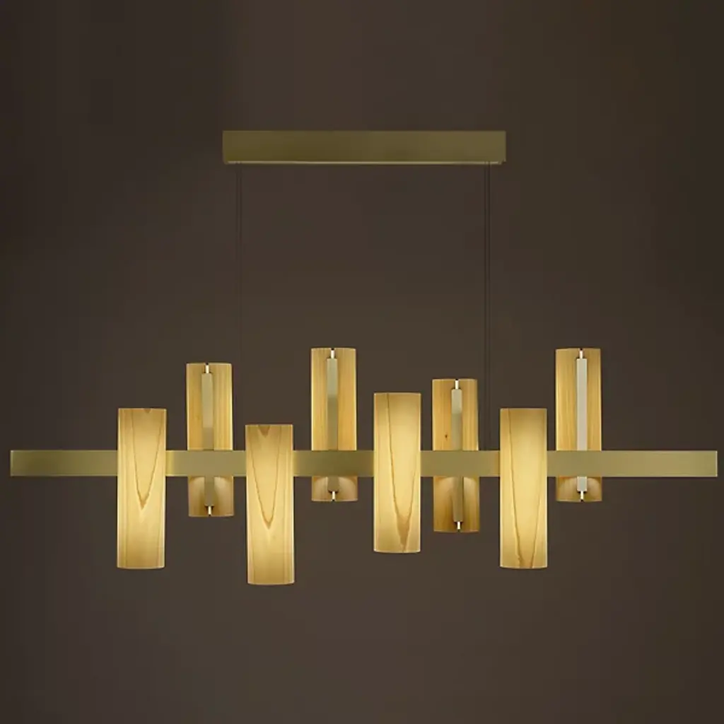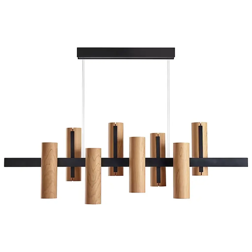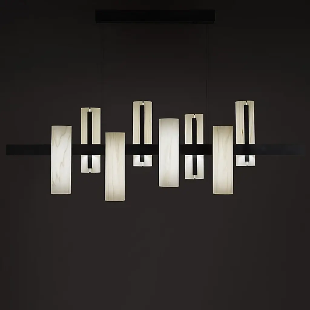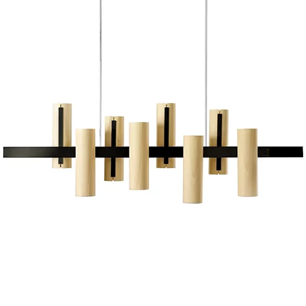 A great way to give an otherwise quiet interior design some rhythm. Designed by Ramon Esteve, the Black Note Keys LED Linear Suspension by LZF is a long and lean arrangement inspired by the black keys on a piano. Along a solid Metal bar, this lighting design features 8 cylindrical shades arranged perpendicularly, at staggered heights to evoke the rise and fall of music notes. Each one is made out of a single fold of real Wood Veneer, the natural grain of which becomes most evident when the fixture is turned on. The ideal choice over a long dining table or kitchen island.
