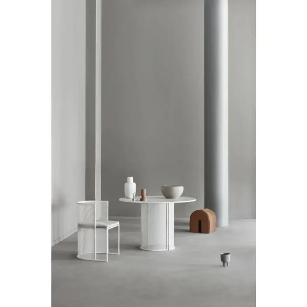 Steel Bahauss dining table by Kristina Dam Studio Materials: Beige outdoor powder-coated steel Dimensions: 120 x H 75 cm 11 kg Dimensions cannot be customized. *Safe to use outdoor. Kristina Dam graduated from The Royal Danish School of Fine Arts, Architecture and Design in Copenhagen. In her designs you will find her great love for architecture and minimalistic graphic lines. Everything originates from Kristina’s passion for design and art. She will find her inspiration when travelling, browsing Pinterest, blogs, Instagram and talking to people. Her first product – a series of limited edition illustrations – quickly became a favorite in Scandinavian design stores, magazines and homes.