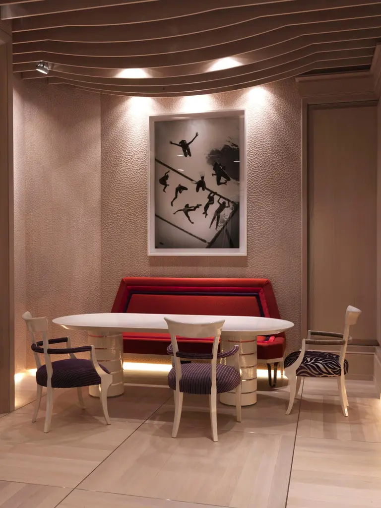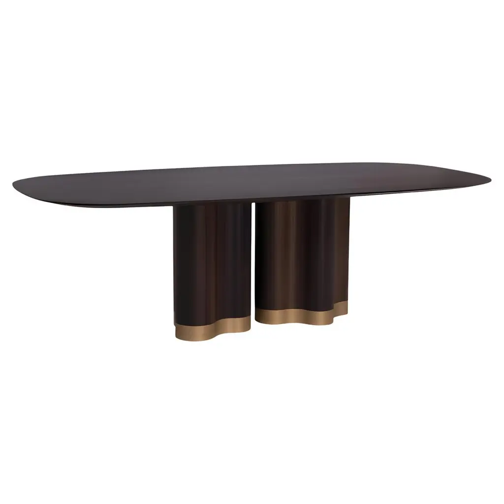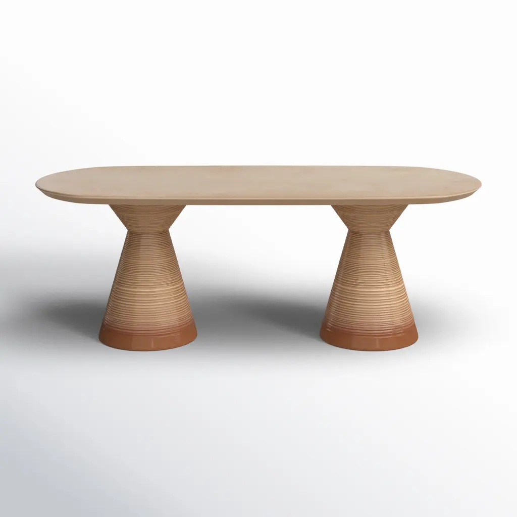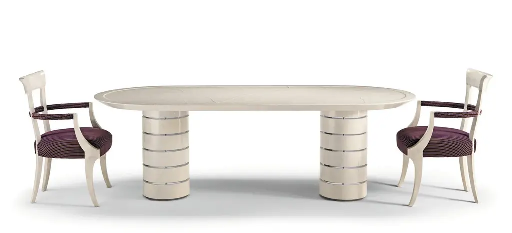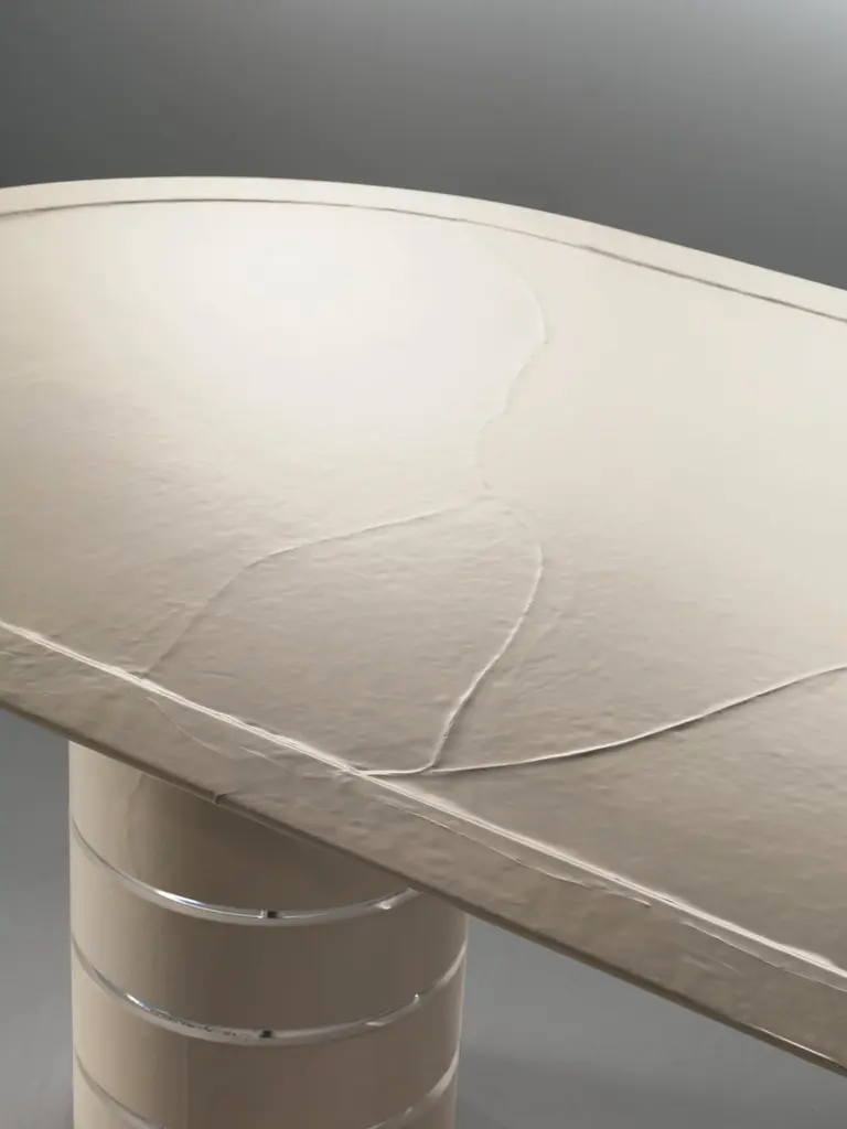 Crafted with precision, the Blade/T boasts a solid wood top and columns, each adorned with mesmerizing concentric circles covered in luxurious parchment. A visual symphony that transforms your dining space into a canvas of contemporary elegance.The table comes alive with plexiglass inserts, adding a touch of modernity to the timeless design. Every meal becomes a feast for the senses as the Blade/T Dining Table seamlessly merges classic craftsmanship with avant-garde aesthetics.