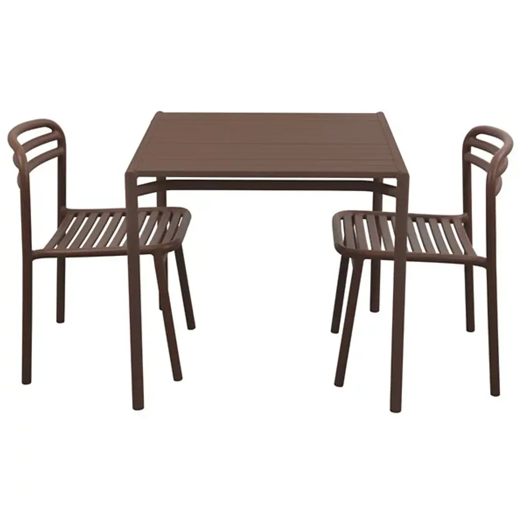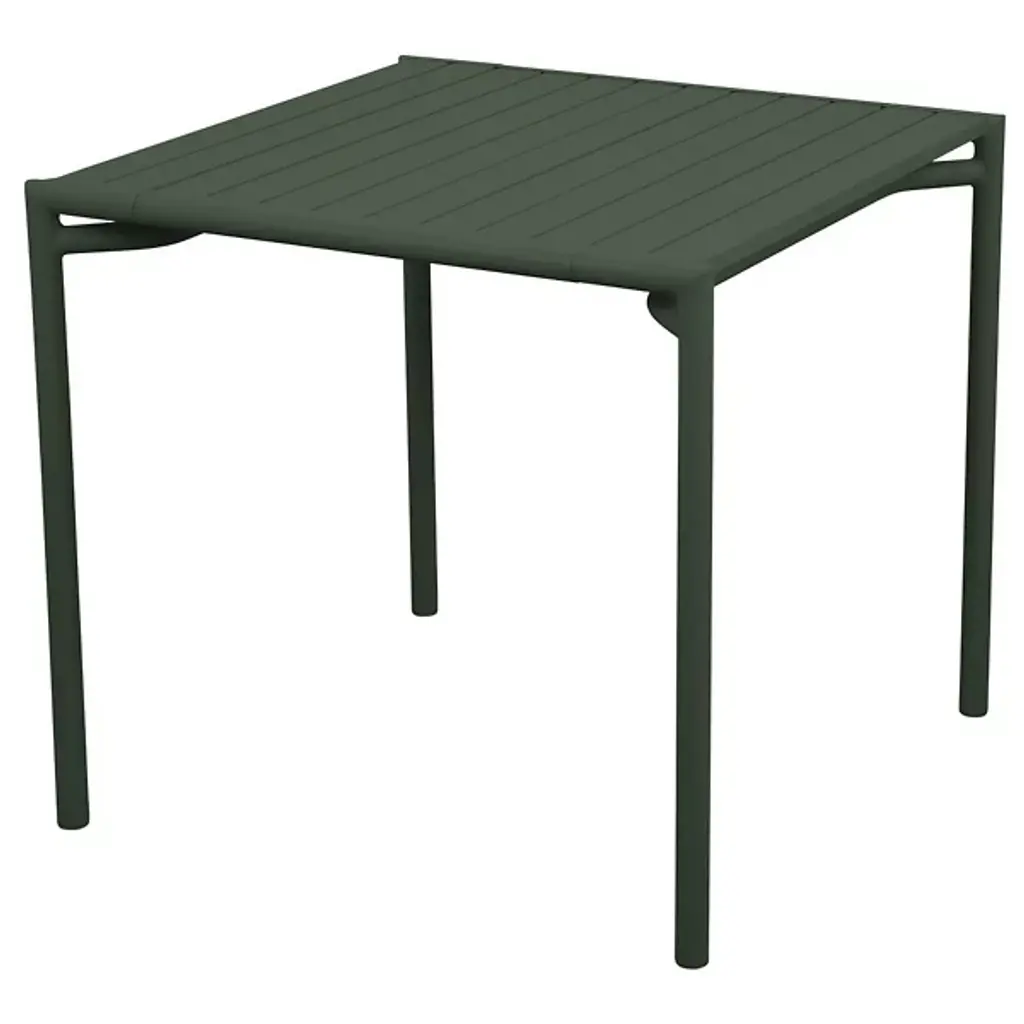 The Bliss Outdoor Dining Table from Cane-line accommodates four people comfortably with its square surface area while maintaining a compact footprint suitable for smaller outdoor spaces. The slatted tabletop design promotes drainage and air circulation, preventing water accumulation after rain exposure. Its powder-coated aluminum construction matches the Bliss seating collection, creating visual continuity across complete dining sets designed by Foersom & Hiort-Lorenzen. The table legs feature subtle cross-bracing that enhances stability without compromising the overall minimalist appearance. This dining table works particularly well on patios, balconies, or deck areas where space optimization matters.