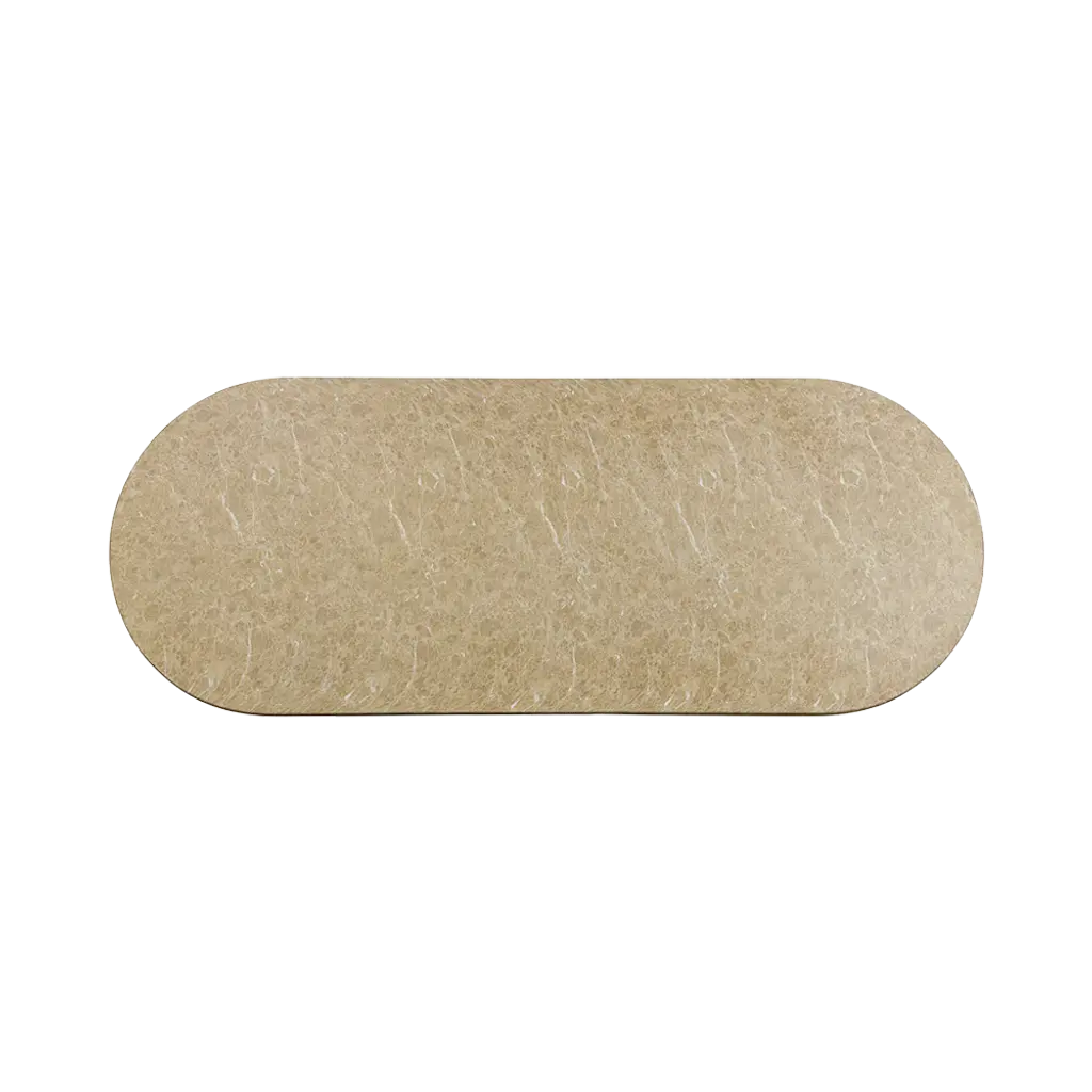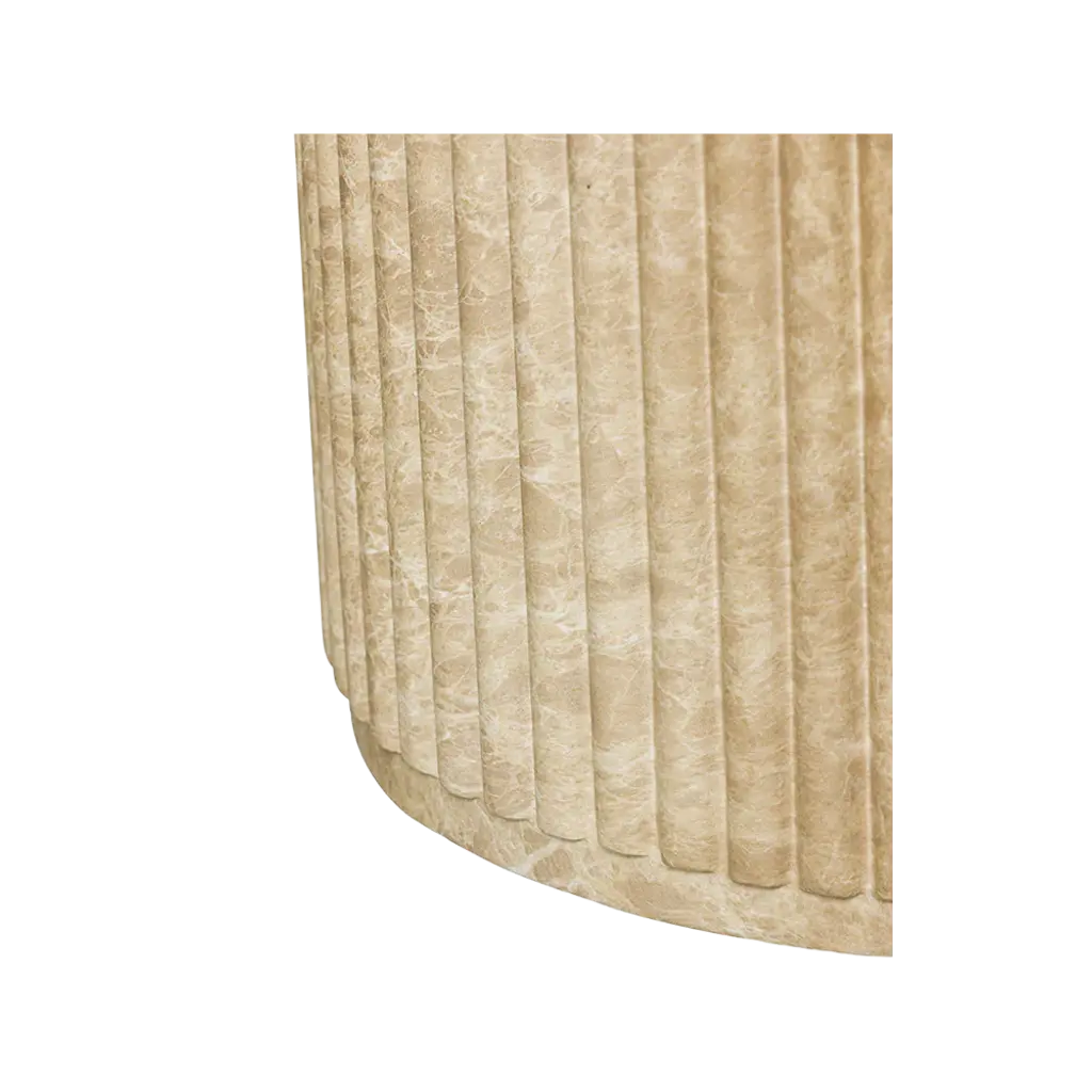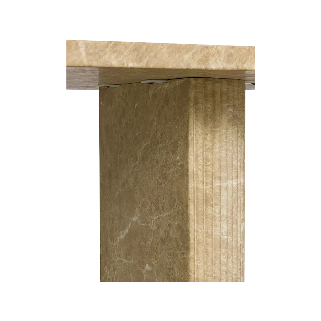 The Bloom Dining Table is a striking and modern addition to any dining space, crafted from durable concrete with a sophisticated Gold marble-like finish. Its sleek, oval tabletop is supported by two elegantly fluted pedestal bases, offering a blend of industrial strength and refined aesthetics. The unique texture and natural veining of the finish add depth and character, making it a perfect centerpiece for both casual meals and elegant gatherings.