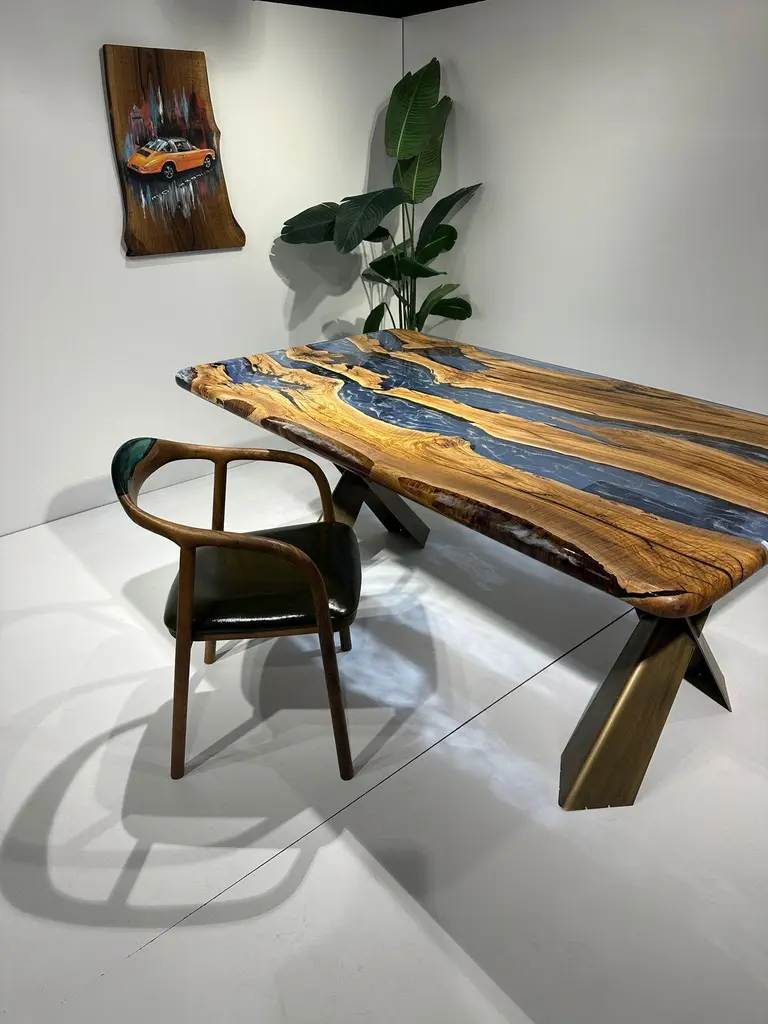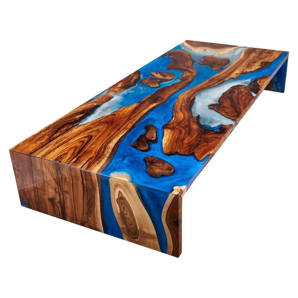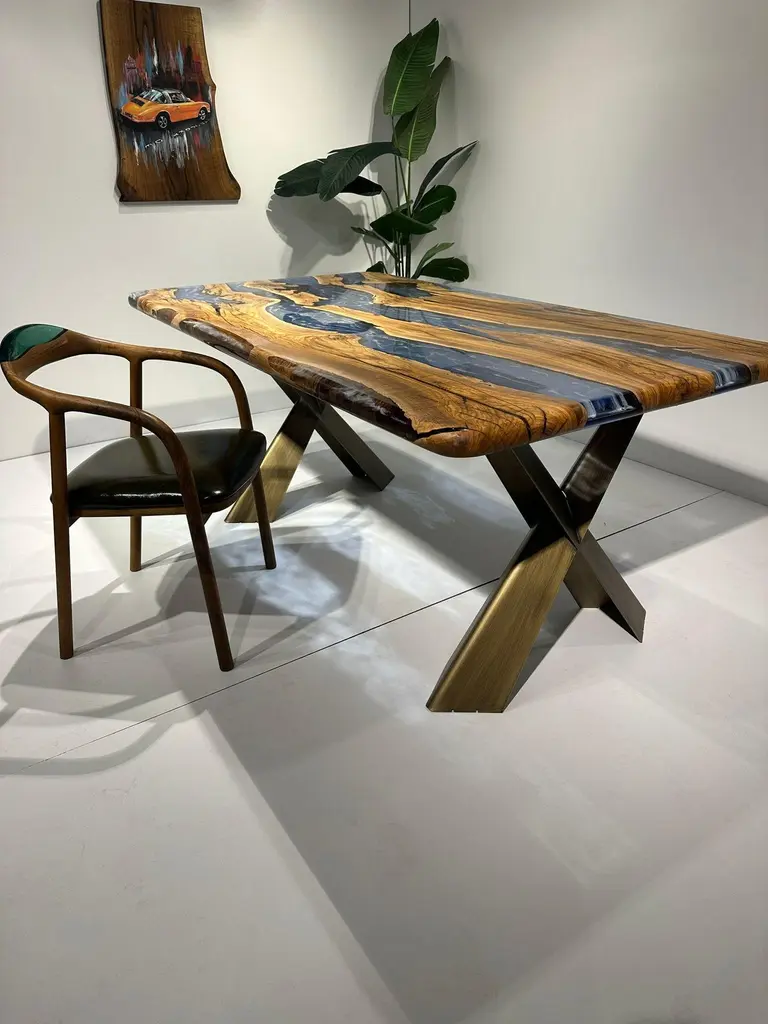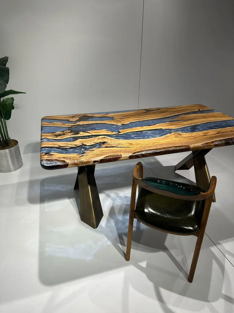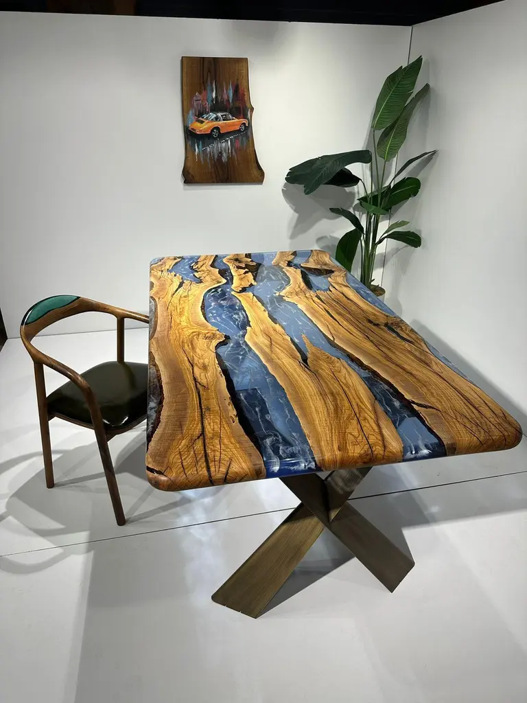 Custom Olive Epoxy TableThis stunning table is made of Mediterranean Olive wood. The unique beauty of the natural curves of olive wood combined with blue epoxy is seen in this table.All woods have its own natural shape. Therefore, each one has its own natural textures. Custom sizes, colours and finishes are available for this product.