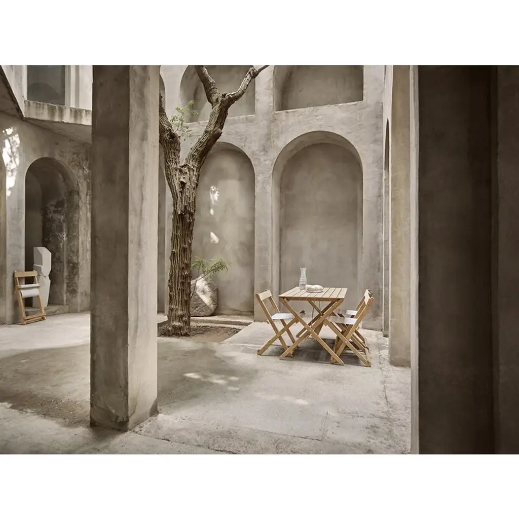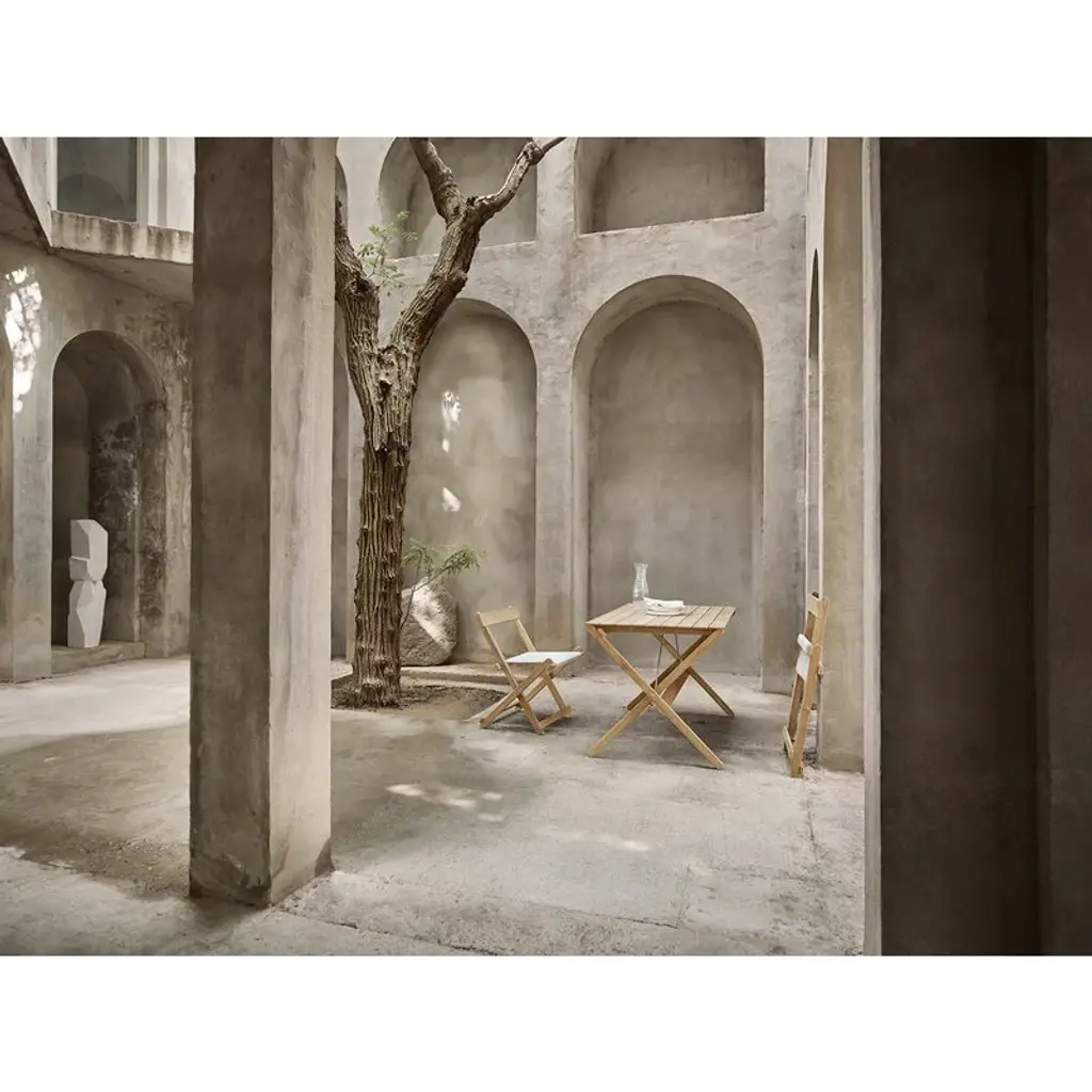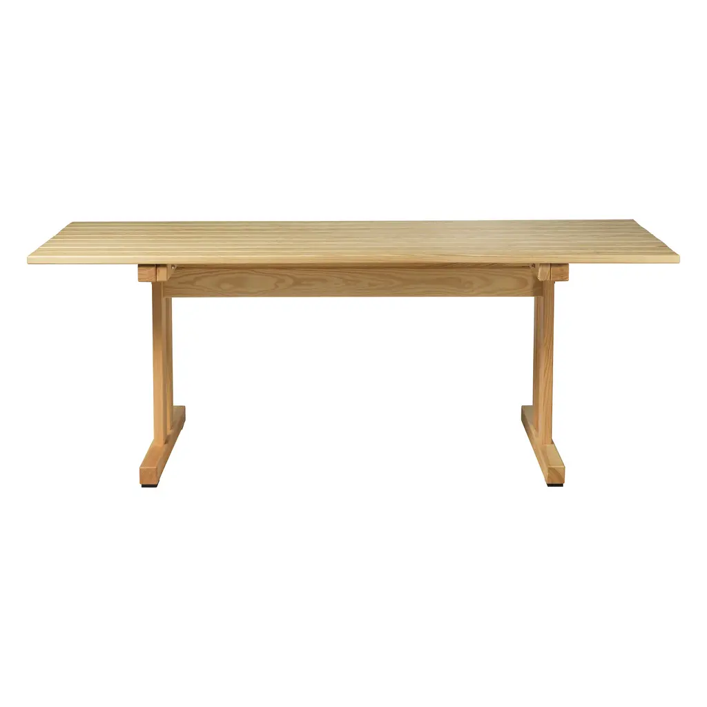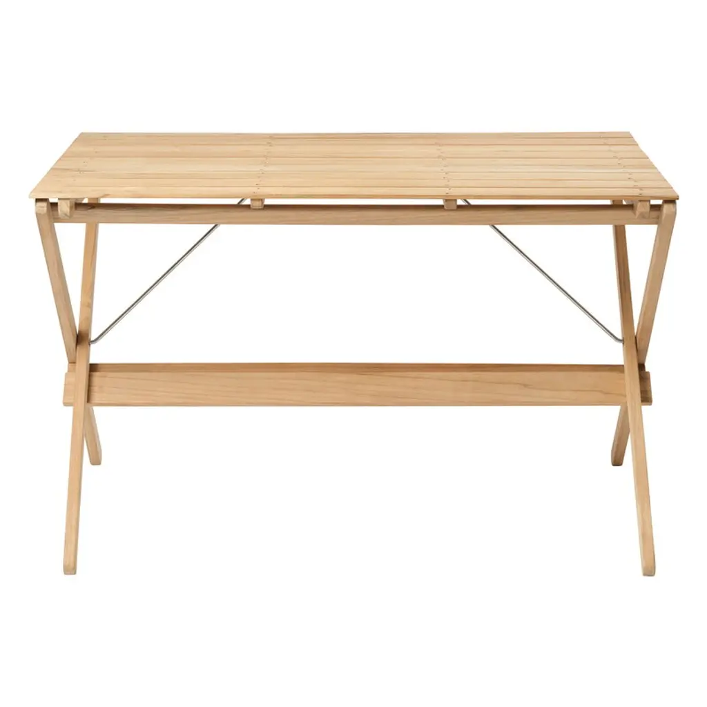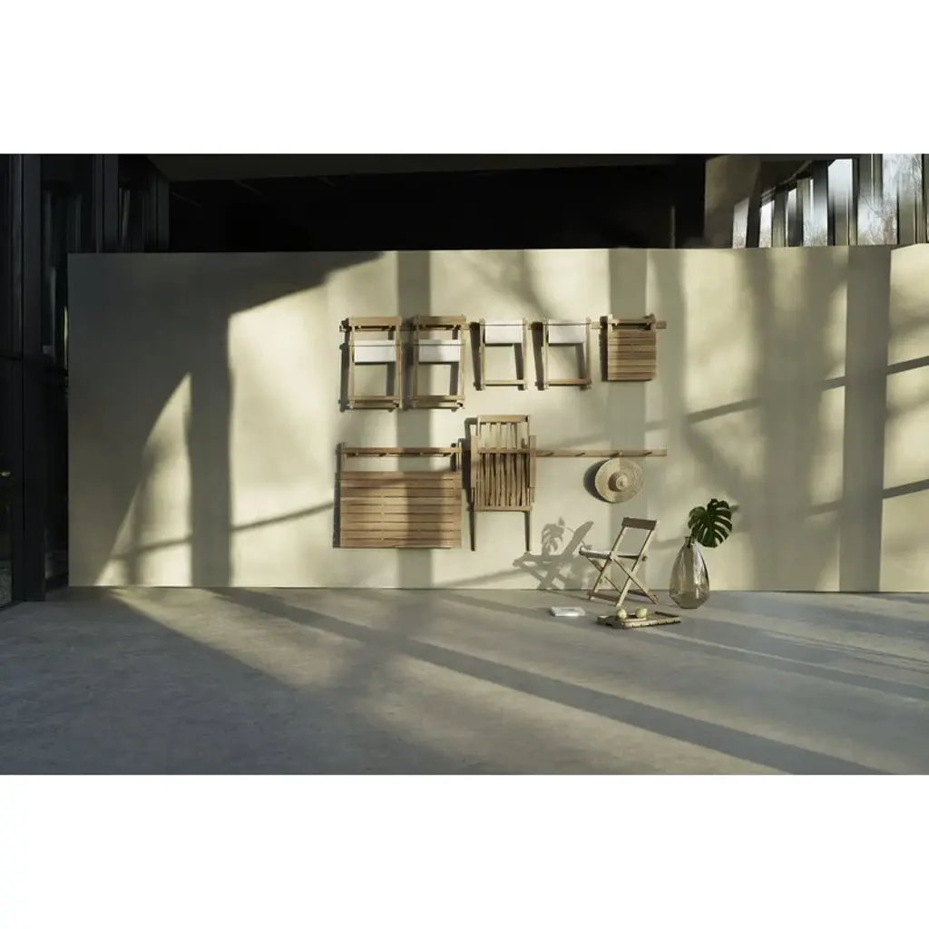 Carl Hansen & Søn's BM3670 table is part of Børge Mogensen's reinterpreted Deck Chair outdoor range, created by the legendary designer in the late 1960s. The sleek BM3670 garden table exudes the simple functionality of the Shaker style, and its minimalistic form captures the eye. Over the years, natural patina adds even more character to the piece as the teak turns a beautiful silver hue. An elegant nod to the relaxed esthetics of picnic tables, the BM3670 outdoor dining table is a charming addition to both the garden and the terrace, and it can be combined with seats of different styles. The folding table is also easy to store – the furniture in the collection can even be neatly hung on the wall using the wall-mounted BM527OS rack. Complete the look of the table with Carl Hansen & Søn's BM1871 bench and BM4570 chairs.