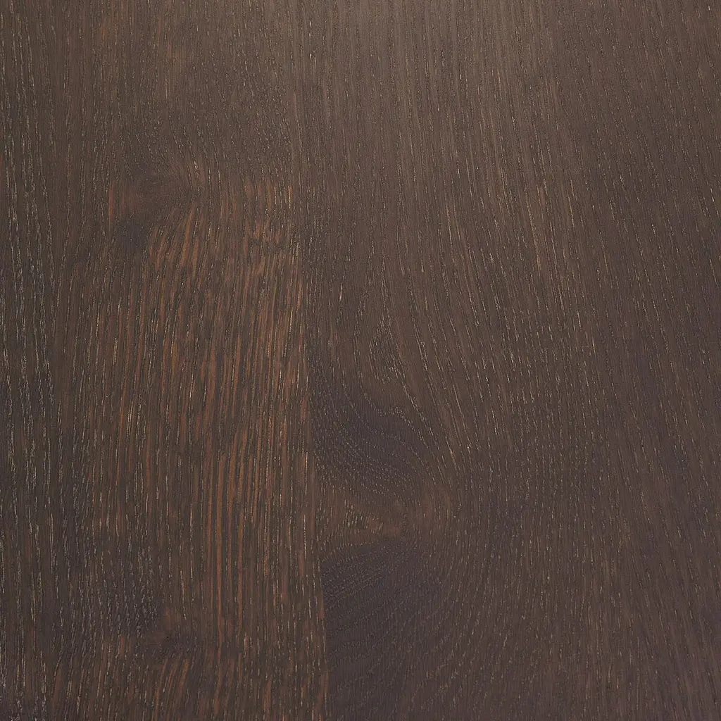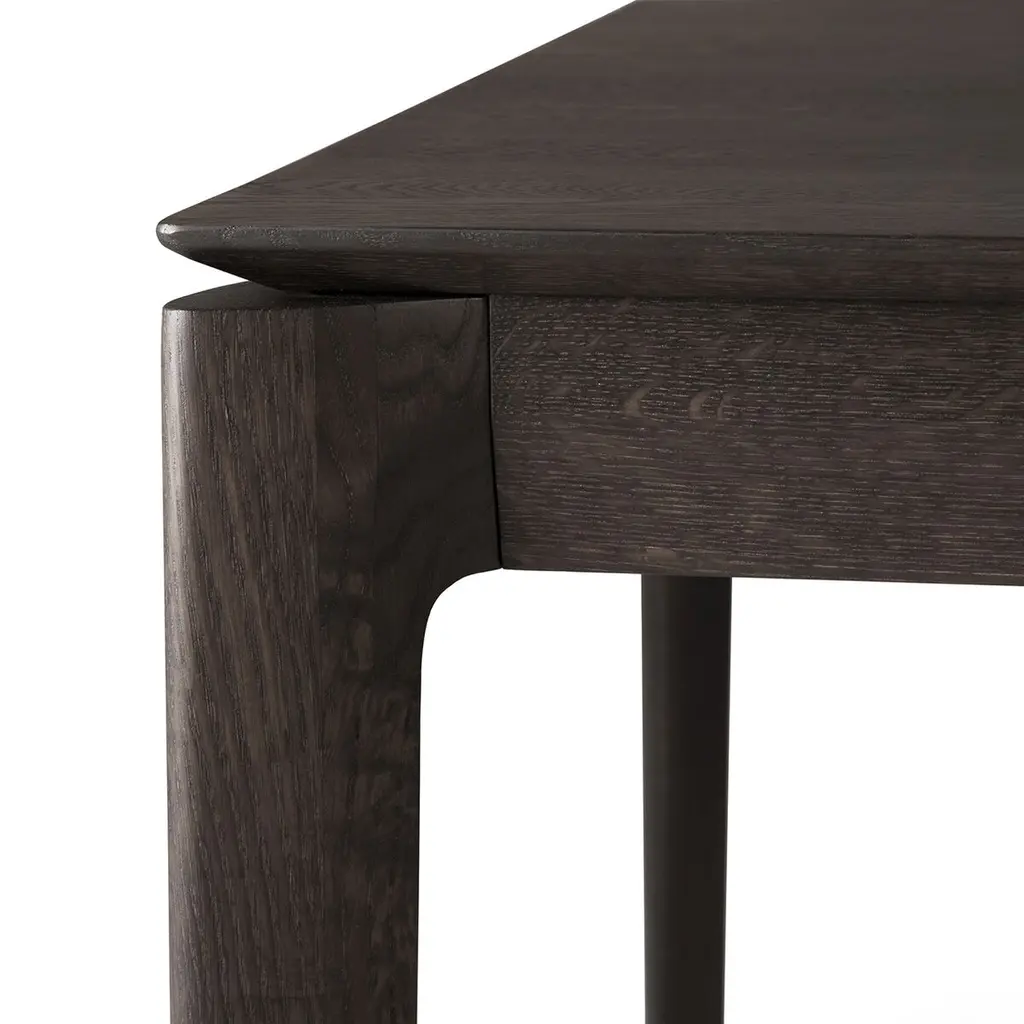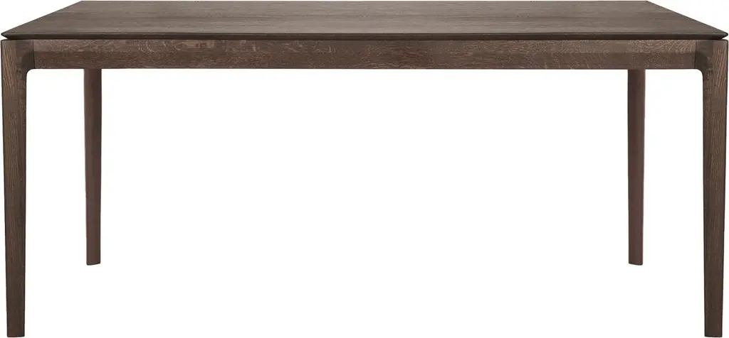One of Ethnicraft's signature designs, this dining table rests a beveled, planked top on subtly tapered legs. It's crafted of oak, a hardwood prized as much for its strength as for its distinctive grain, which is enhanced by the dark brown finish.
