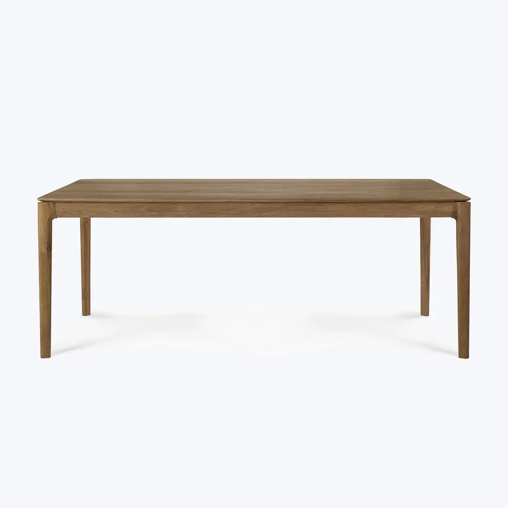 The Bok Dining Table by Ethnicraft is a study in contrasts where airy refinement meets quiet strength and where sculptural simplicity hides remarkable craftsmanship. Crafted in Serbia from solid natural oak or teak and finished in a range of tones including oiled oak, dark brown, black oak, varnished oak, natural teak, and teak brown this table adapts effortlessly to the atmosphere of the room. With sizes ranging from intimate 55-inch lengths to expansive 95-inch versions, each one offers generous surface space while maintaining the light, architectural profile that defines the Bok collection. The design is rooted in Ethnicraft’s signature language of flowing lines and thoughtful proportion. A broad, stable tabletop rests on subtly tapered legs that curve into the frame with quiet confidence, creating a silhouette that feels simultaneously grounded and airy. The sculptural structure reveals clean, minimalist lines when viewed from afar and intricate material clarity up close a balance of simplicity and complexity that elevates the dining space without overwhelming it. Every table is shaped from responsibly sourced hardwood, showcasing the natural character of European oak or the warm, organic richness of teak. The grain remains visible and touchable beneath each finish, allowing the wood to speak for itself and ensuring every piece carries its own individual personality. The result is a table that feels lived-in from the very beginning, softening the room with natural texture and an easy elegance. The Bok Dining Table blends seamlessly into contemporary, Scandinavian, and minimalist interiors, grounding gatherings with a calm yet sculptural presence. Whether it anchors a small breakfast nook or defines a spacious dining room, the table encourages connection, conversation, and everyday ritual. Designed to last and made to age beautifully, it stands as a timeless centerpiece one that evolves with the home as years and memories collect around it.