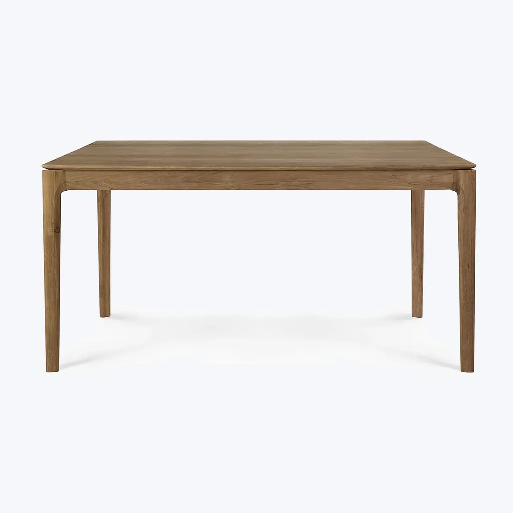 The Bok Dining Table by Ethnicraft is a study in contrasts where airy refinement meets quiet strength and where sculptural simplicity hides remarkable craftsmanship. Crafted in Serbia from solid natural oak or teak and finished in a range of tones including oiled oak, dark brown, black oak, varnished oak, natural teak, and teak brown this table adapts effortlessly to the atmosphere of the room. With sizes ranging from intimate 55-inch lengths to expansive 95-inch versions, each one offers generous surface space while maintaining the light, architectural profile that defines the Bok collection. The design is rooted in Ethnicraft’s signature language of flowing lines and thoughtful proportion. A broad, stable tabletop rests on subtly tapered legs that curve into the frame with quiet confidence, creating a silhouette that feels simultaneously grounded and airy. The sculptural structure reveals clean, minimalist lines when viewed from afar and intricate material clarity up close a balance of simplicity and complexity that elevates the dining space without overwhelming it. Every table is shaped from responsibly sourced hardwood, showcasing the natural character of European oak or the warm, organic richness of teak. The grain remains visible and touchable beneath each finish, allowing the wood to speak for itself and ensuring every piece carries its own individual personality. The result is a table that feels lived-in from the very beginning, softening the room with natural texture and an easy elegance. The Bok Dining Table blends seamlessly into contemporary, Scandinavian, and minimalist interiors, grounding gatherings with a calm yet sculptural presence. Whether it anchors a small breakfast nook or defines a spacious dining room, the table encourages connection, conversation, and everyday ritual. Designed to last and made to age beautifully, it stands as a timeless centerpiece one that evolves with the home as years and memories collect around it.