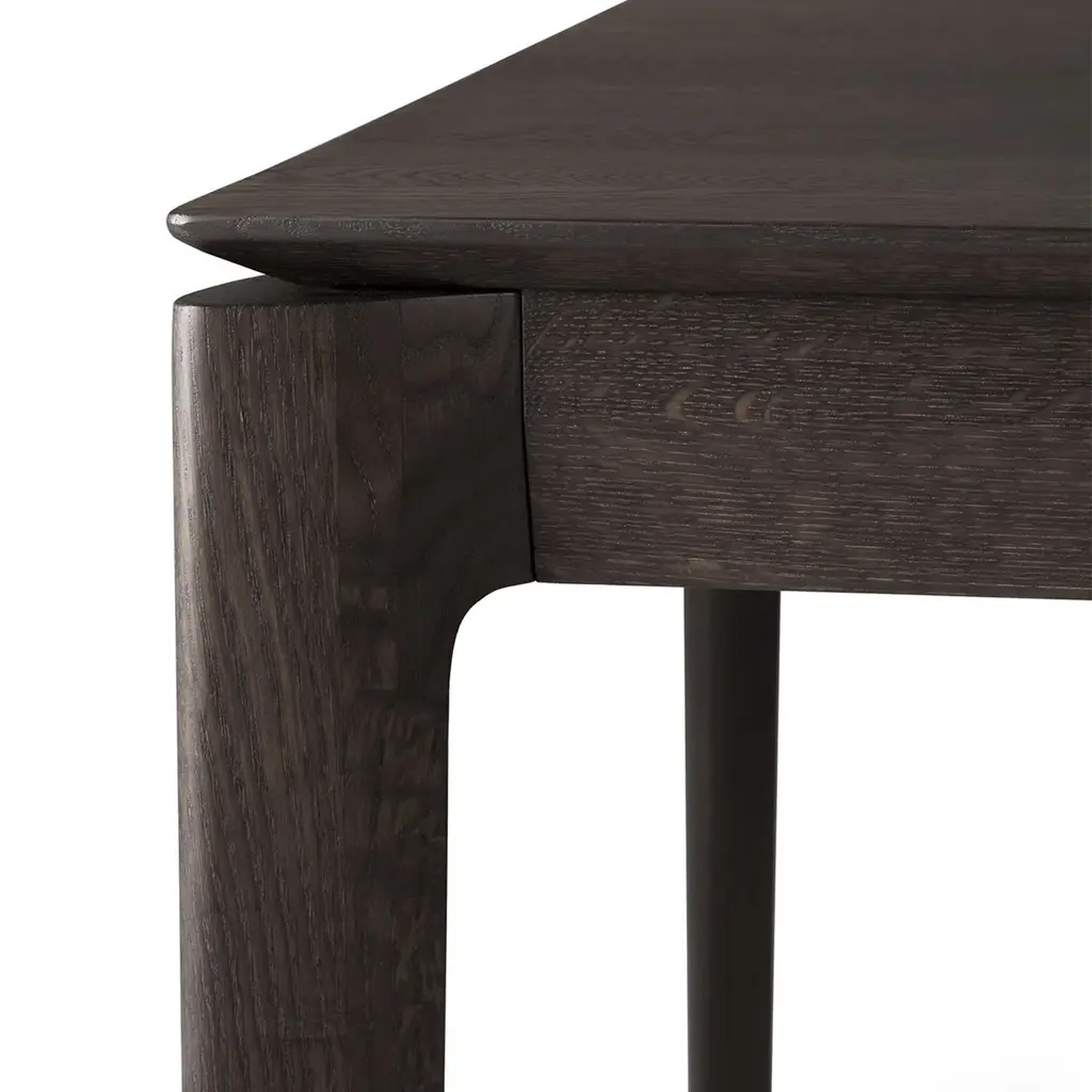 The Bok Dining Table by Ethnicraft is a study in contrasts where airy refinement meets quiet strength and where sculptural simplicity hides remarkable craftsmanship. Crafted in Serbia from solid natural oak or teak and finished in a range of tones including oiled oak, dark brown, black oak, varnished oak, natural teak, and teak brown this table adapts effortlessly to the atmosphere of the room. With sizes ranging from intimate 55-inch lengths to expansive 95-inch versions, each one offers generous surface space while maintaining the light, architectural profile that defines the Bok collection. The design is rooted in Ethnicraft’s signature language of flowing lines and thoughtful proportion. A broad, stable tabletop rests on subtly tapered legs that curve into the frame with quiet confidence, creating a silhouette that feels simultaneously grounded and airy. The sculptural structure reveals clean, minimalist lines when viewed from afar and intricate material clarity up close a balance of simplicity and complexity that elevates the dining space without overwhelming it. Every table is shaped from responsibly sourced hardwood, showcasing the natural character of European oak or the warm, organic richness of teak. The grain remains visible and touchable beneath each finish, allowing the wood to speak for itself and ensuring every piece carries its own individual personality. The result is a table that feels lived-in from the very beginning, softening the room with natural texture and an easy elegance. The Bok Dining Table blends seamlessly into contemporary, Scandinavian, and minimalist interiors, grounding gatherings with a calm yet sculptural presence. Whether it anchors a small breakfast nook or defines a spacious dining room, the table encourages connection, conversation, and everyday ritual. Designed to last and made to age beautifully, it stands as a timeless centerpiece one that evolves with the home as years and memories collect around it.
