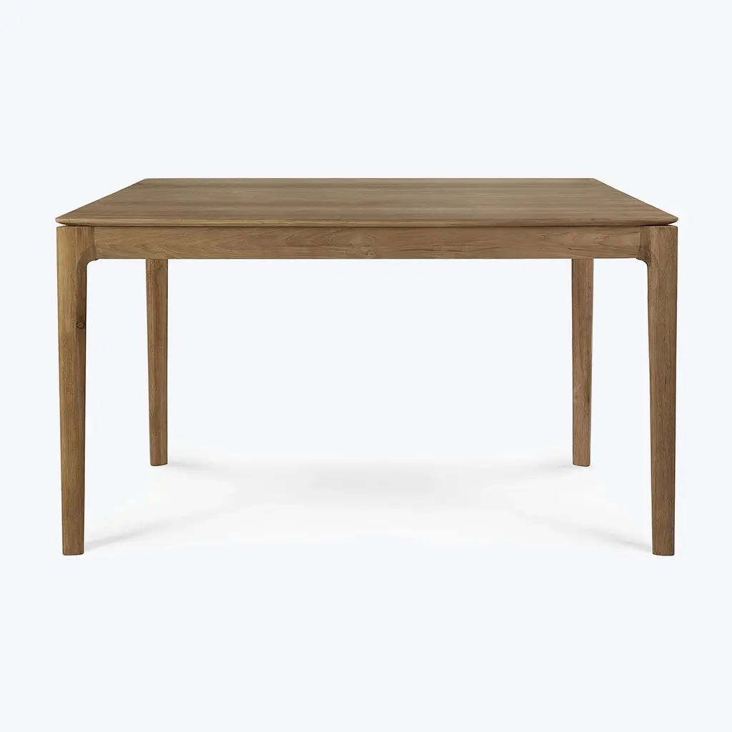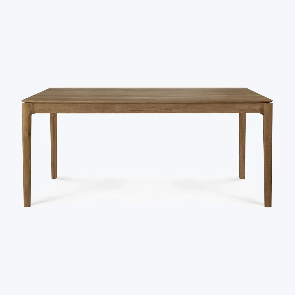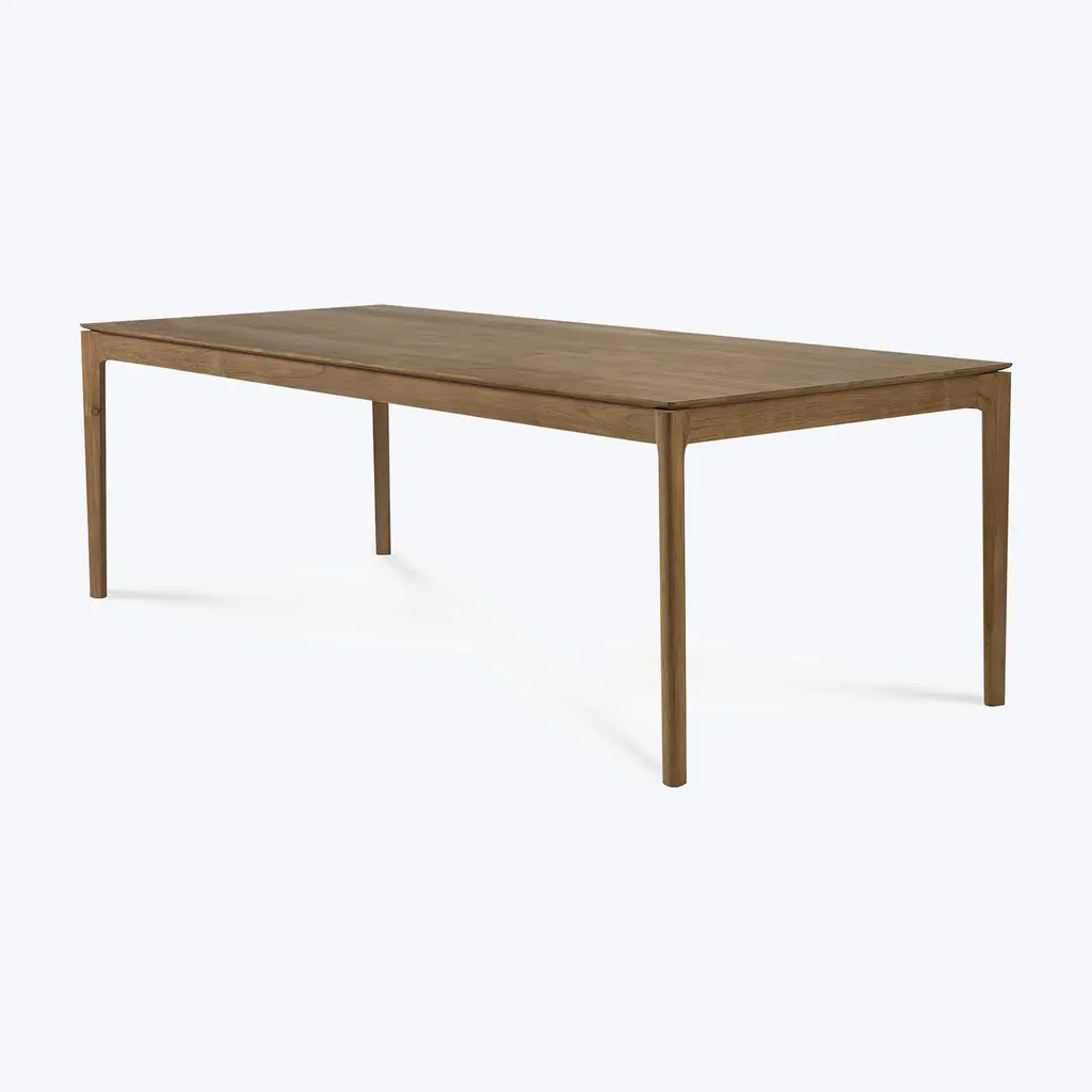 The Bok Dining Table by Ethnicraft is a study in contrasts where airy refinement meets quiet strength and where sculptural simplicity hides remarkable craftsmanship. Crafted in Serbia from solid natural oak or teak and finished in a range of tones including oiled oak, dark brown, black oak, varnished oak, natural teak, and teak brown this table adapts effortlessly to the atmosphere of the room. With sizes ranging from intimate 55-inch lengths to expansive 95-inch versions, each one offers generous surface space while maintaining the light, architectural profile that defines the Bok collection. The design is rooted in Ethnicraft’s signature language of flowing lines and thoughtful proportion. A broad, stable tabletop rests on subtly tapered legs that curve into the frame with quiet confidence, creating a silhouette that feels simultaneously grounded and airy. The sculptural structure reveals clean, minimalist lines when viewed from afar and intricate material clarity up close a balance of simplicity and complexity that elevates the dining space without overwhelming it. Every table is shaped from responsibly sourced hardwood, showcasing the natural character of European oak or the warm, organic richness of teak. The grain remains visible and touchable beneath each finish, allowing the wood to speak for itself and ensuring every piece carries its own individual personality. The result is a table that feels lived-in from the very beginning, softening the room with natural texture and an easy elegance. The Bok Dining Table blends seamlessly into contemporary, Scandinavian, and minimalist interiors, grounding gatherings with a calm yet sculptural presence. Whether it anchors a small breakfast nook or defines a spacious dining room, the table encourages connection, conversation, and everyday ritual. Designed to last and made to age beautifully, it stands as a timeless centerpiece one that evolves with the home as years and memories collect around it.