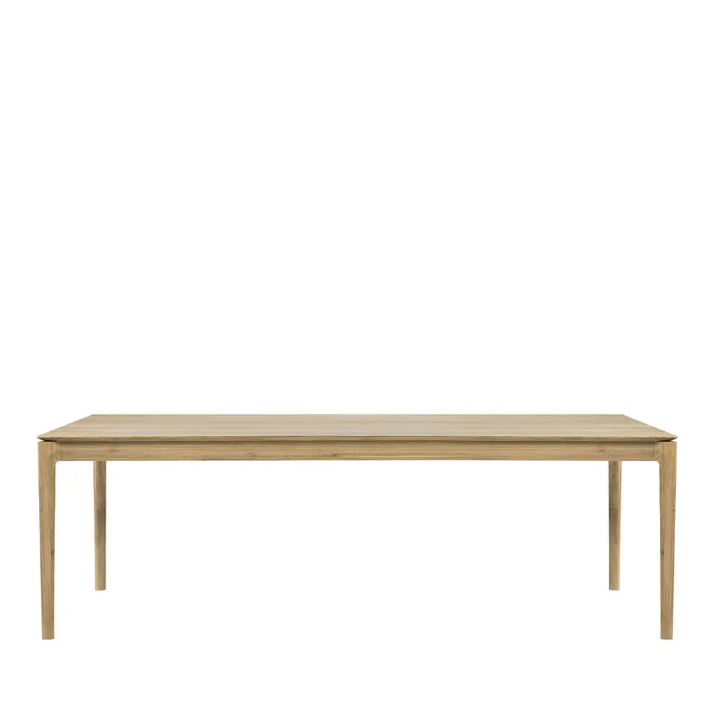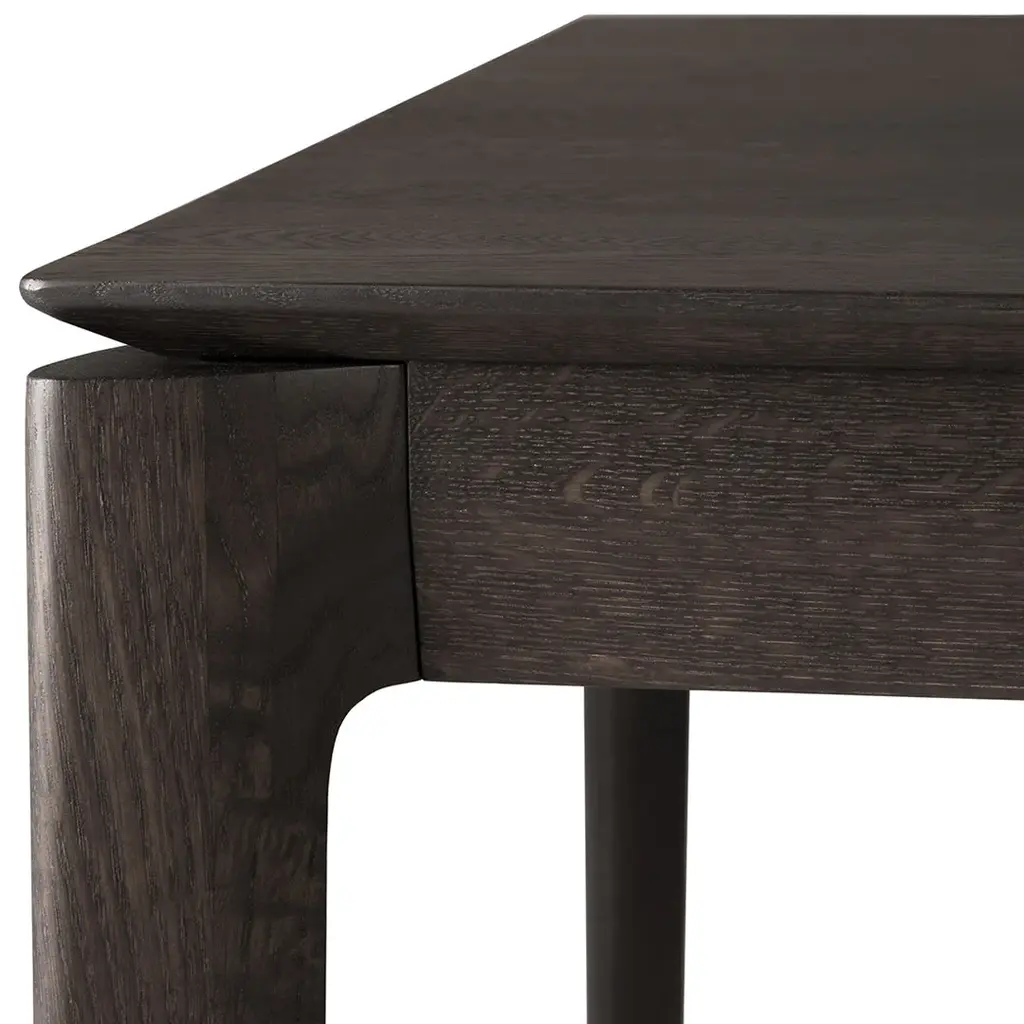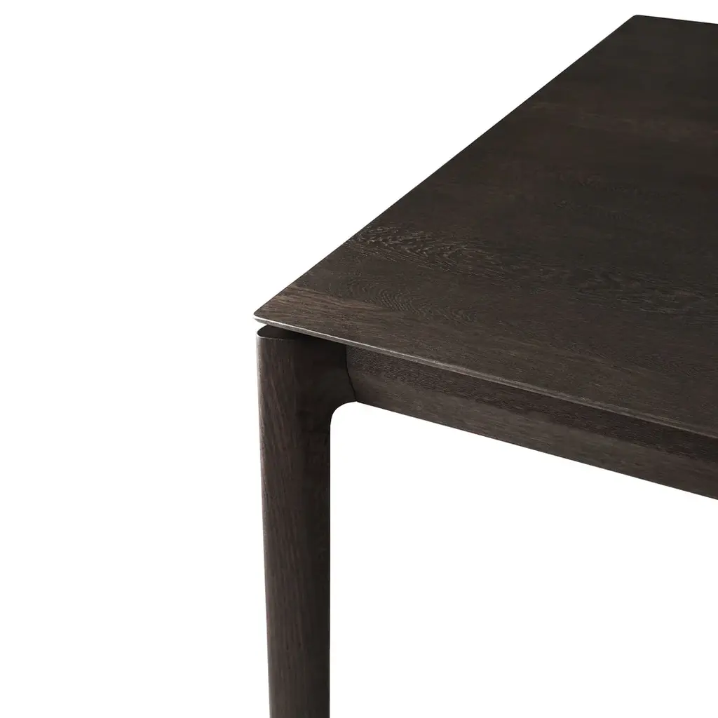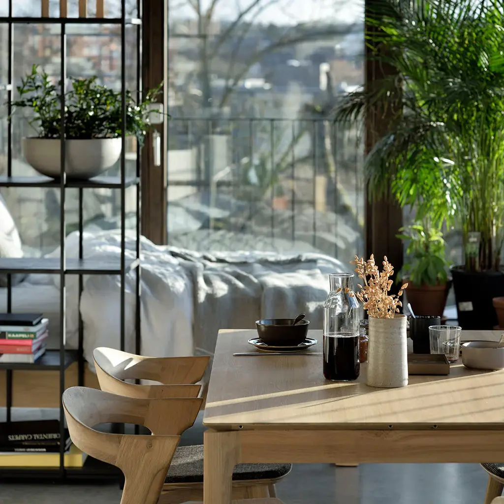 The Ethnicraft BOK Dining Table, designed by Alain Van Havre, transforms everyday dining into an elevated experience through its masterful blend of sculptural elegance and inviting presence. This signature piece has become a contemporary classic, beloved by design enthusiasts and families alike for its ability to enhance both casual meals and special gatherings.The table's distinctive character emerges from Van Havre's thoughtful approach to form. Each leg features subtle faceting and a gentle curve that creates dynamic lines from every angle, while the tabletop's ingeniously lifted corners – a detail that never fails to draw admiring comments from guests – give the piece its memorable character. This interplay between strength and delicacy makes the BOK a natural conversation starter.Available in multiple sizes and finishes, including a sophisticated black oak option, the table adapts effortlessly to various living styles and spaces. Whether hosting intimate family dinners, lively dinner parties, or holiday celebrations, the BOK provides a gathering point that feels both special and welcoming. The solid oak construction, sourced from sustainably managed forests, ensures the piece will develop rich character over time, collecting memories along with its natural patina.The BOK Dining Table demonstrates Ethnicraft's gift for creating furniture that enhances daily life while maintaining artistic vision. Its clean lines complement virtually any dining chairs or room decor, making it an exceptionally versatile choice for both modern and traditional homes.
